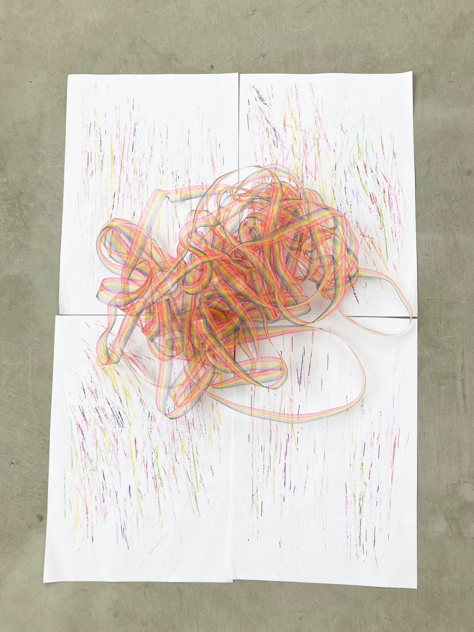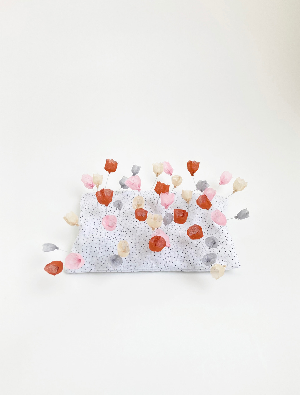 同地では2019年7月に刊行した“ブラウスのレシピ本”『HOMEMADE BLOUSES』(nidi gallery)の出版記念展以来約2年ぶり、4度目の個展となる同展では、SARS-CoV-2の感染拡大に伴う自身の環境の変化をフィードバックした新作のインスタレーションを出展。“非現実的とも感じる日常”をテーマに、主に身近な布や糸を用いて制作した『砂漠のチューリップ』『homemade rainbow』などの作品で構成されています。