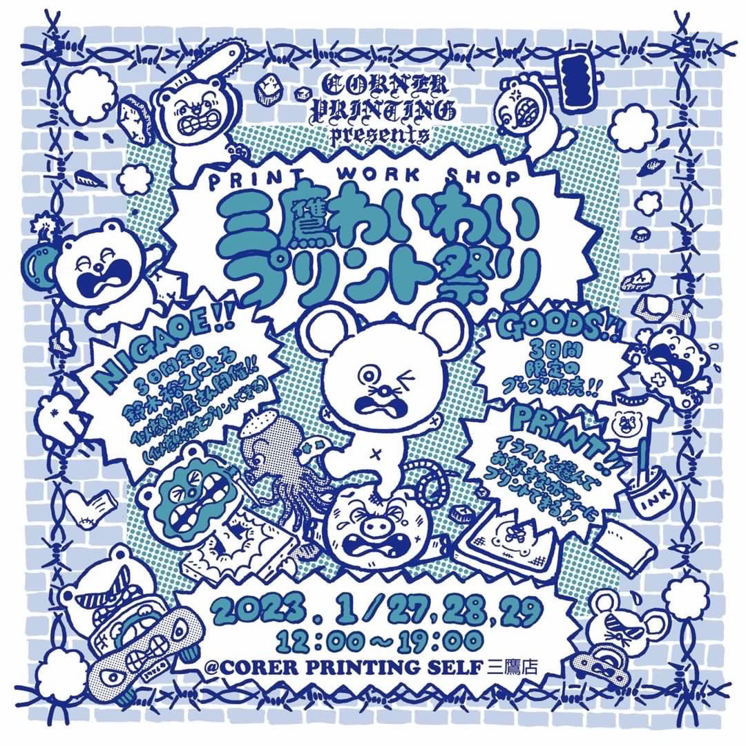 昨年はneco眠る結成20周年記念ツアーでのVJ担当が話題となったイラストレーター・鈴木裕之が、東京・三鷹 CORNER PRINTING SELF 三鷹店にてポップアップ・イベント「CORNER PRINTING Presents "PRINT WORK SHOP 三鷹わいわいプリント祭り"」を1月27日(金)から29日(日)までの3日間に亘って開催。