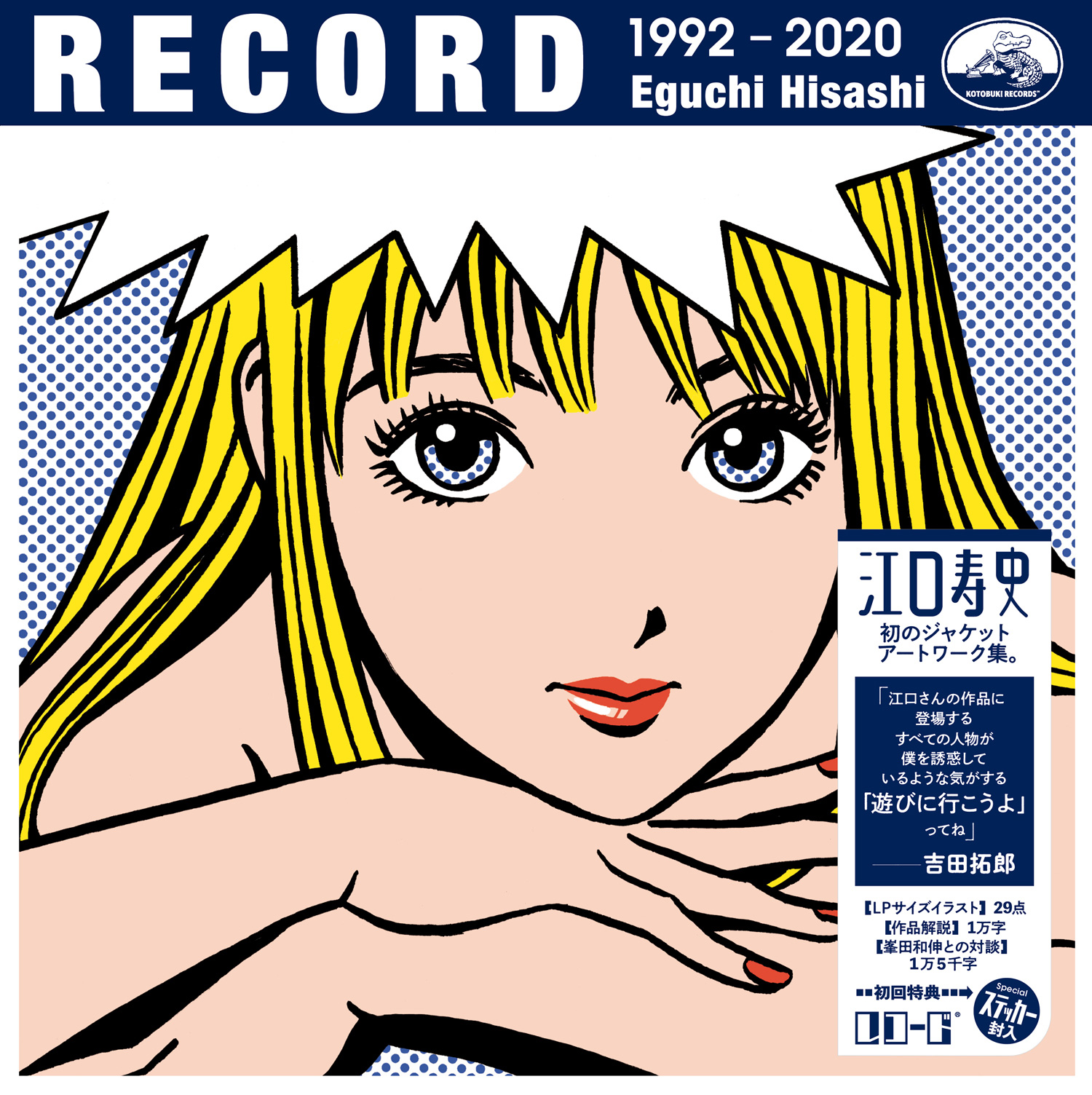 江口寿史が、過去に手がけた音楽CD作品カヴァー・アートを12″ヴァイナル・サイズ(31.5cm×331.5cm | B3変形)でコンパイルするイラスト集『RECORD』(河出書房新社 | 4,500円 + 税)を4月30日(木)に発売予定。