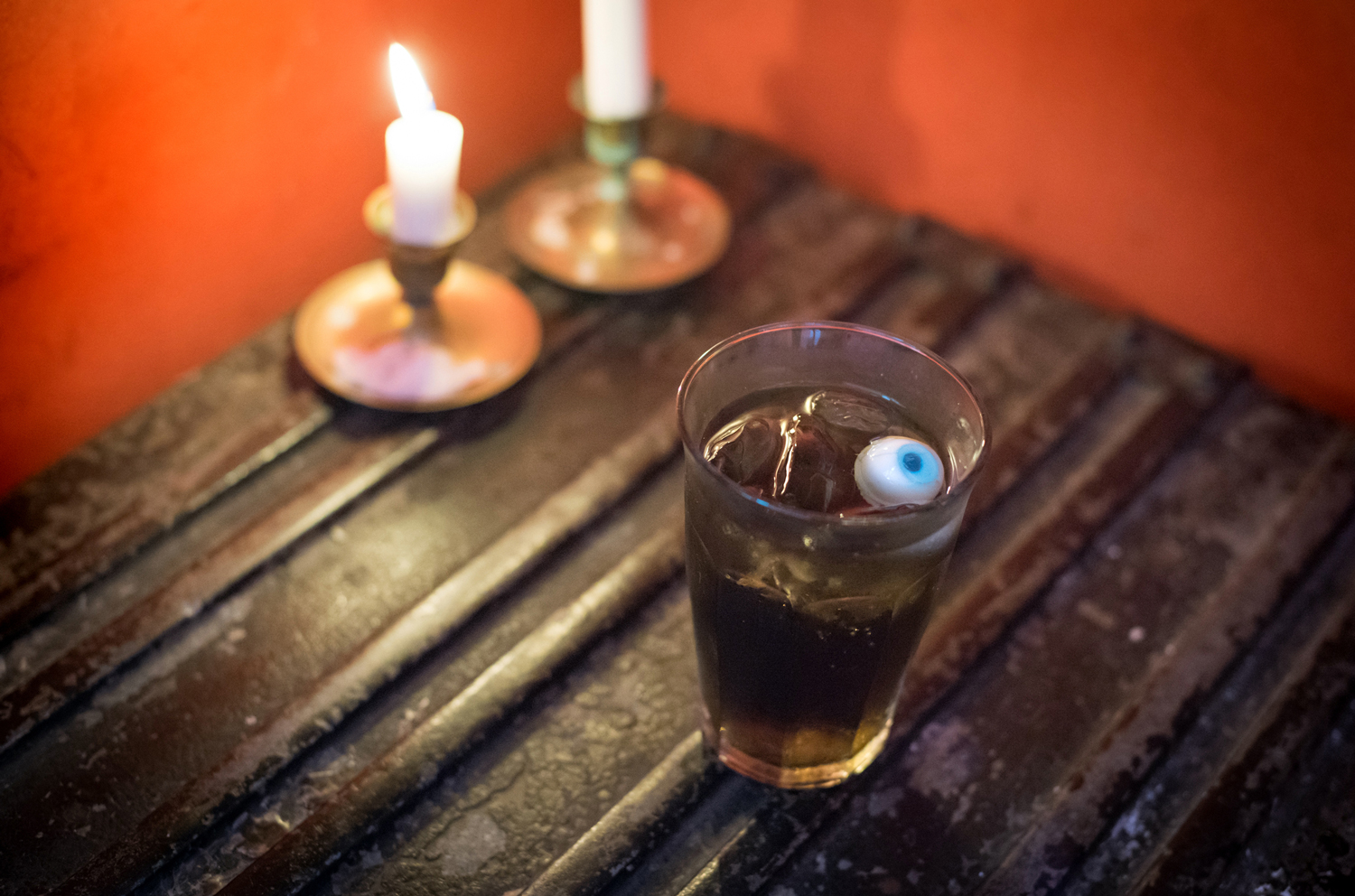 珍しい黒いウォッカ『ブラヴォド ブラック ウォッカ 』を使用。アニス系のリキュール『オパールネラ ブラックサンブーカ』の上品な風味と辛口のジンジャエールの爽快な飲み口が特徴です。作中のコミカルなグロテスクさをイメージし、黒くインパクトのある色合いと目玉のゼリーがチャームポイント。