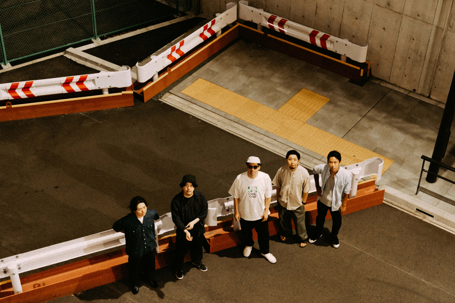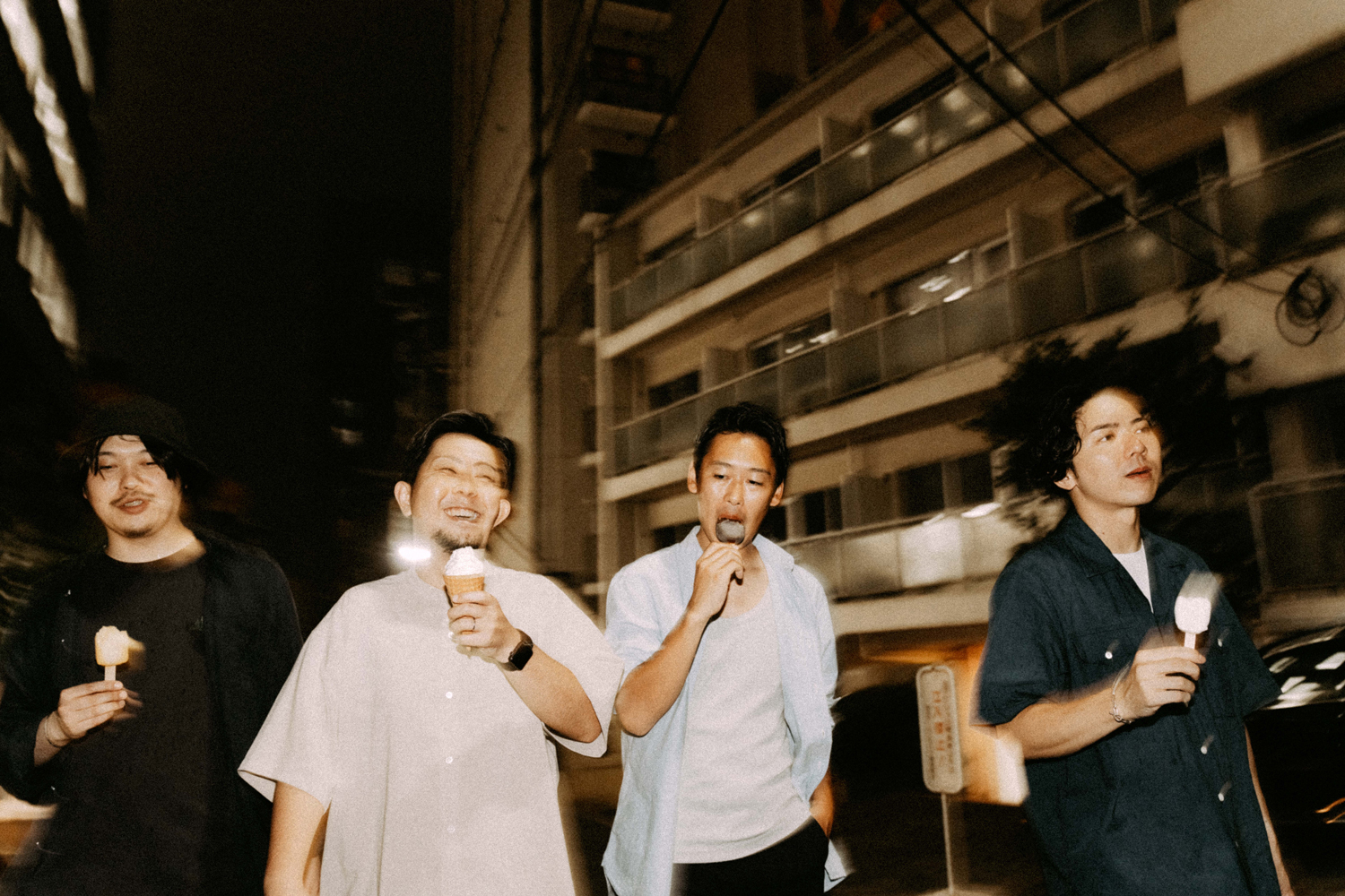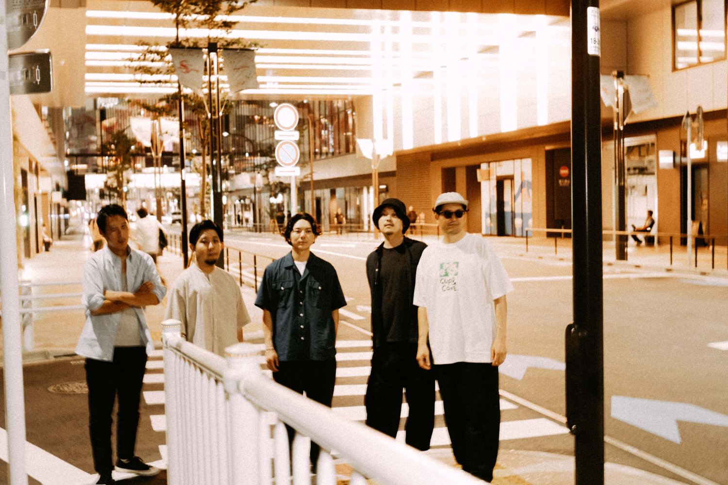S 「まさにそうです。“Vibrant Sun”のレコーディング当日まで、ツヅキくんとは会ったことがなかったんですね。さっきの話の通り、デモ段階で生演奏だけどダンス・トラックっぽい、カチッとしたビート、グルーヴをバンドとしてやっていこうとしているのかと思いきや。レコーディング当日にツヅキくんのドラムを生で聴いたら、これはちょっと違うぞ、めちゃめちゃ個性派ドラマーだなと思って。想像よりももっとはみ出てくるタイプで、すごく個性的なグルーヴがあったんですよね。後から知ったんですけど、ツヅキくんはもともとジャズの人だったんですよね。それは、自分にとっては嬉しい誤算でした。また、そのレコーディングの雰囲気がとても良くて、いろいろ話を聞いてみたらヤマザキくん、ミヤノくん、ツヅキくんの3人が中学からの同級生で、アサクラさんもひとつ上の先輩なんですよね。だからもともと友達だったっていうのもあるし。いろいろ聞いていない情報がいっぱい出てくるんですよ。もう、めちゃくちゃバンドじゃん!って(笑)。そこから一気に考えかたが変わりましたね」