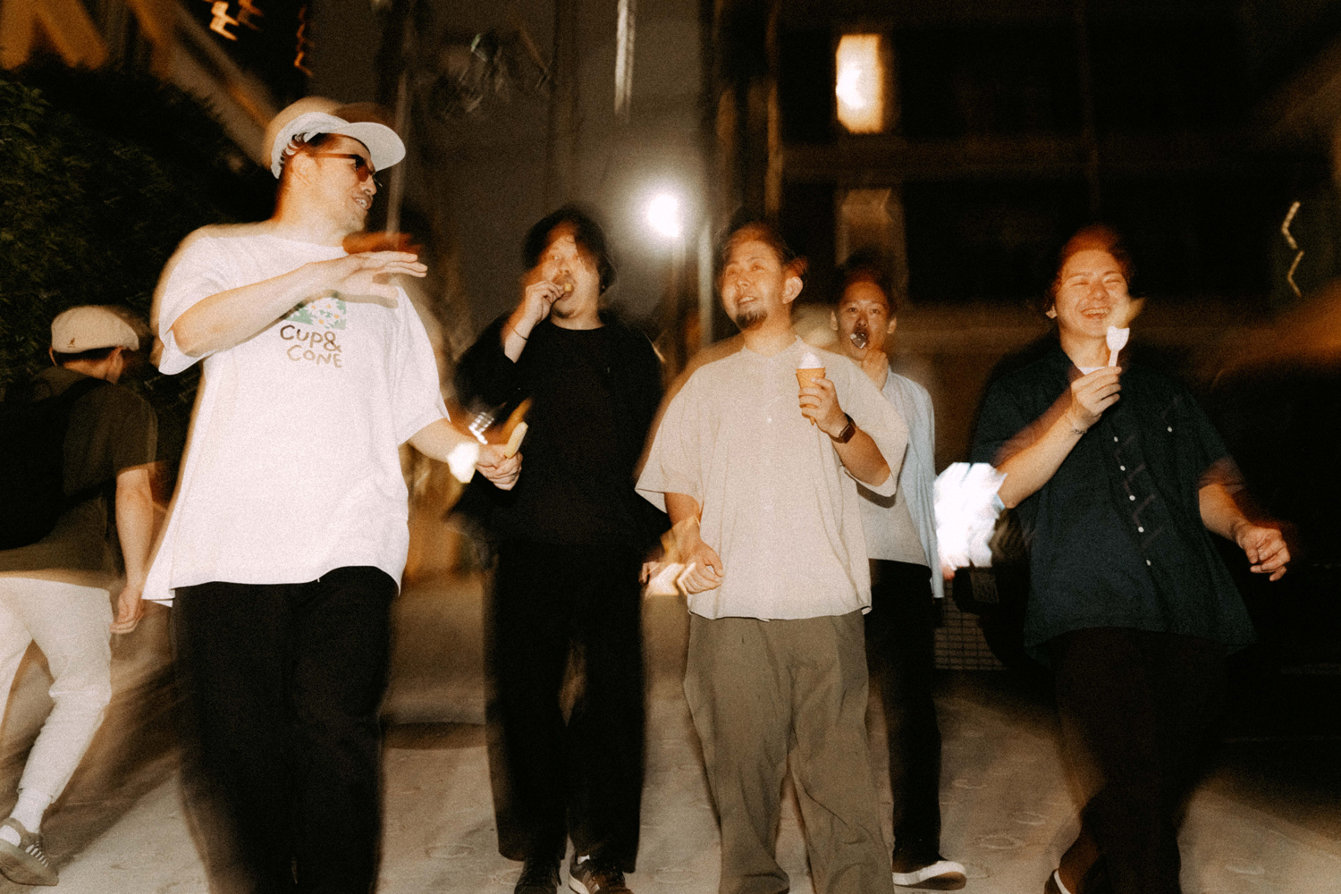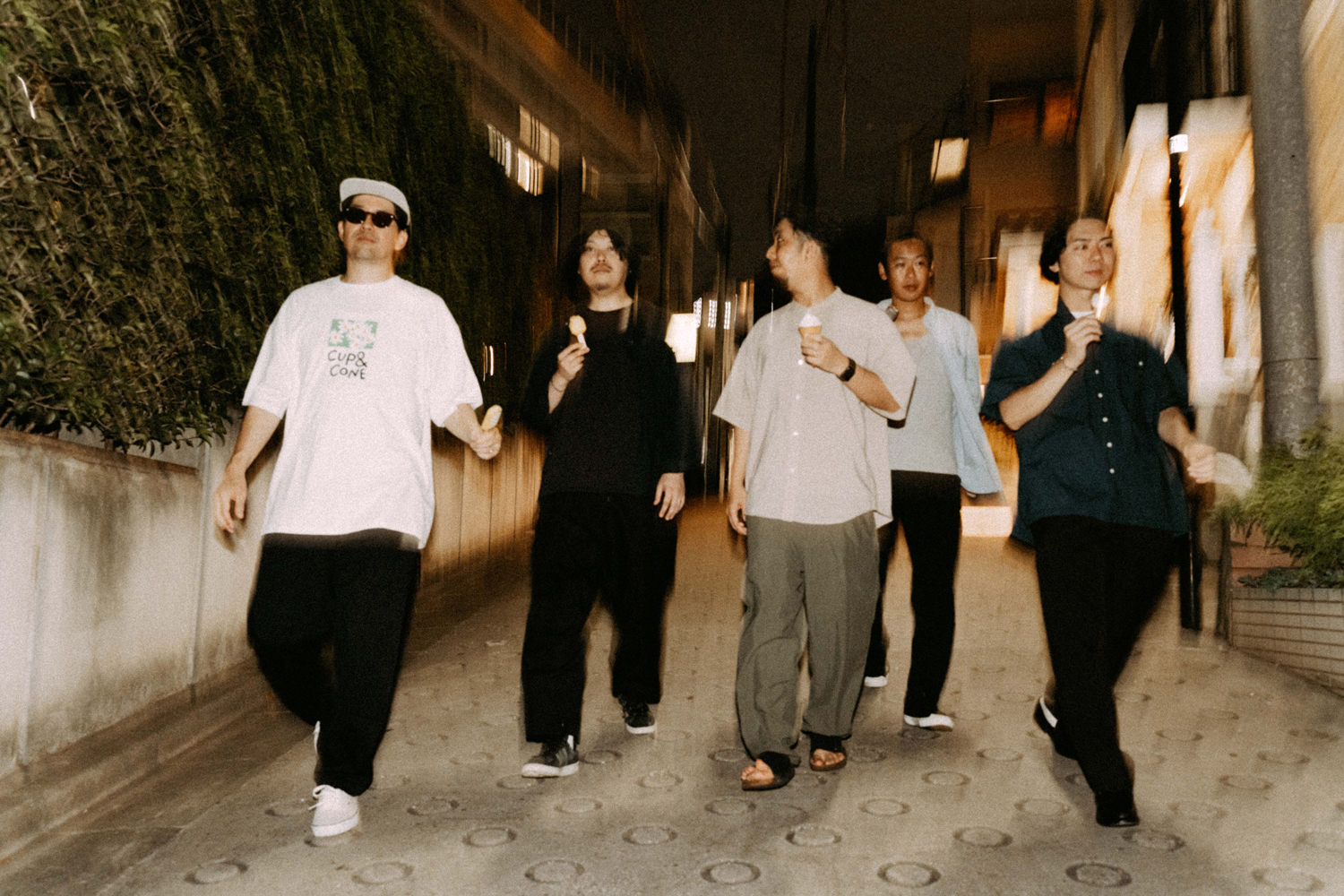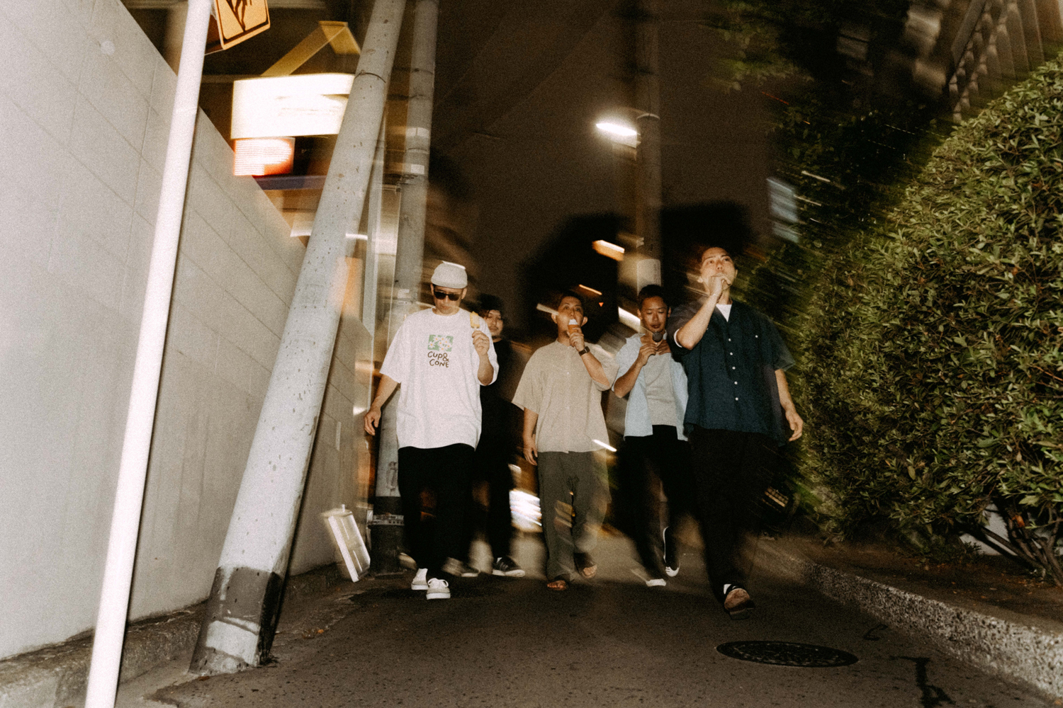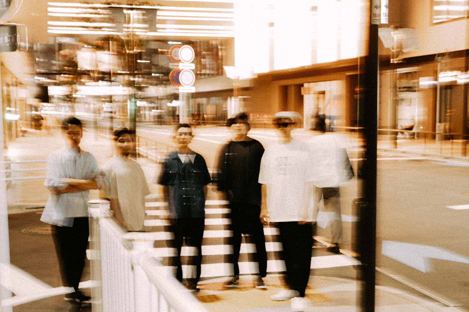 S 「まさにそうです。“Vibrant Sun”のレコーディング当日まで、ツヅキくんとは会ったことがなかったんですね。さっきの話の通り、デモ段階で生演奏だけどダンス・トラックっぽい、カチッとしたビート、グルーヴをバンドとしてやっていこうとしているのかと思いきや。レコーディング当日にツヅキくんのドラムを生で聴いたら、これはちょっと違うぞ、めちゃめちゃ個性派ドラマーだなと思って。想像よりももっとはみ出てくるタイプで、すごく個性的なグルーヴがあったんですよね。後から知ったんですけど、ツヅキくんはもともとジャズの人だったんですよね。それは、自分にとっては嬉しい誤算でした。また、そのレコーディングの雰囲気がとても良くて、いろいろ話を聞いてみたらヤマザキくん、ミヤノくん、ツヅキくんの3人が中学からの同級生で、アサクラさんもひとつ上の先輩なんですよね。だからもともと友達だったっていうのもあるし。いろいろ聞いていない情報がいっぱい出てくるんですよ。もう、めちゃくちゃバンドじゃん!って(笑)。そこから一気に考えかたが変わりましたね」
