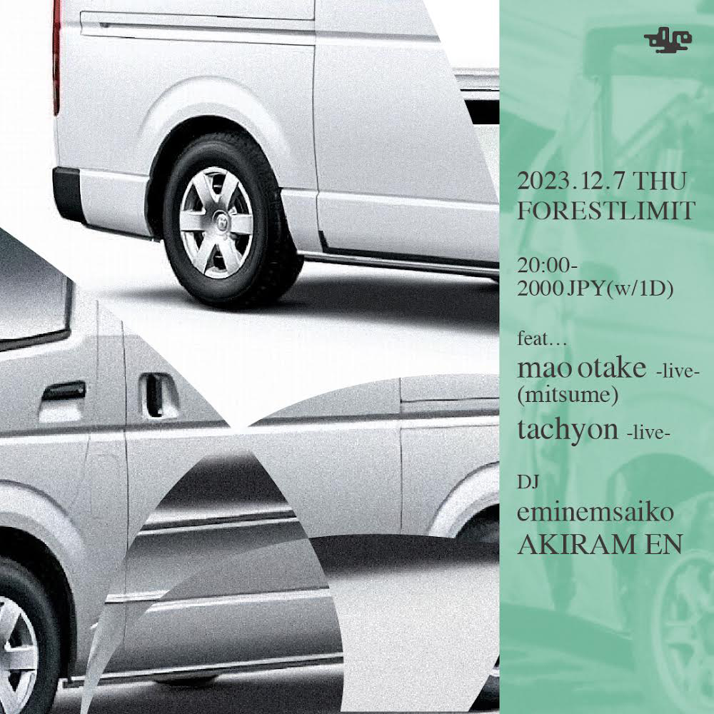 同公演には、レジデントのAKIRAM EN、eminemsaikoによるDJに加え、ミツメのギター / シンセサイザー奏者としても活躍する大竹雅生と、主にギター弾き語りスタイルでの演奏活動で知られる音楽家のエレクトロニック / アヴァンギャルド形態・tachyonがライヴ・アクトとして出演。なお北海道在住のtachyonは、本公演に合わせてSoundCloudにて2曲を公開しています。