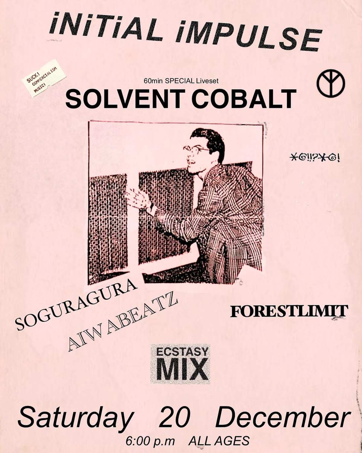 AIWABEATZとsoguraguraの共催で今年6月よりスタートし、QUEER NATIONS出演の初回、COMPUMAを迎えた9月の第2回がいずれも好評を博したパーティ「iNiTiAL iMPULSE」。その第3回が12月20日(土)に東京・幡ヶ谷 Forestlimitにて開催されます。