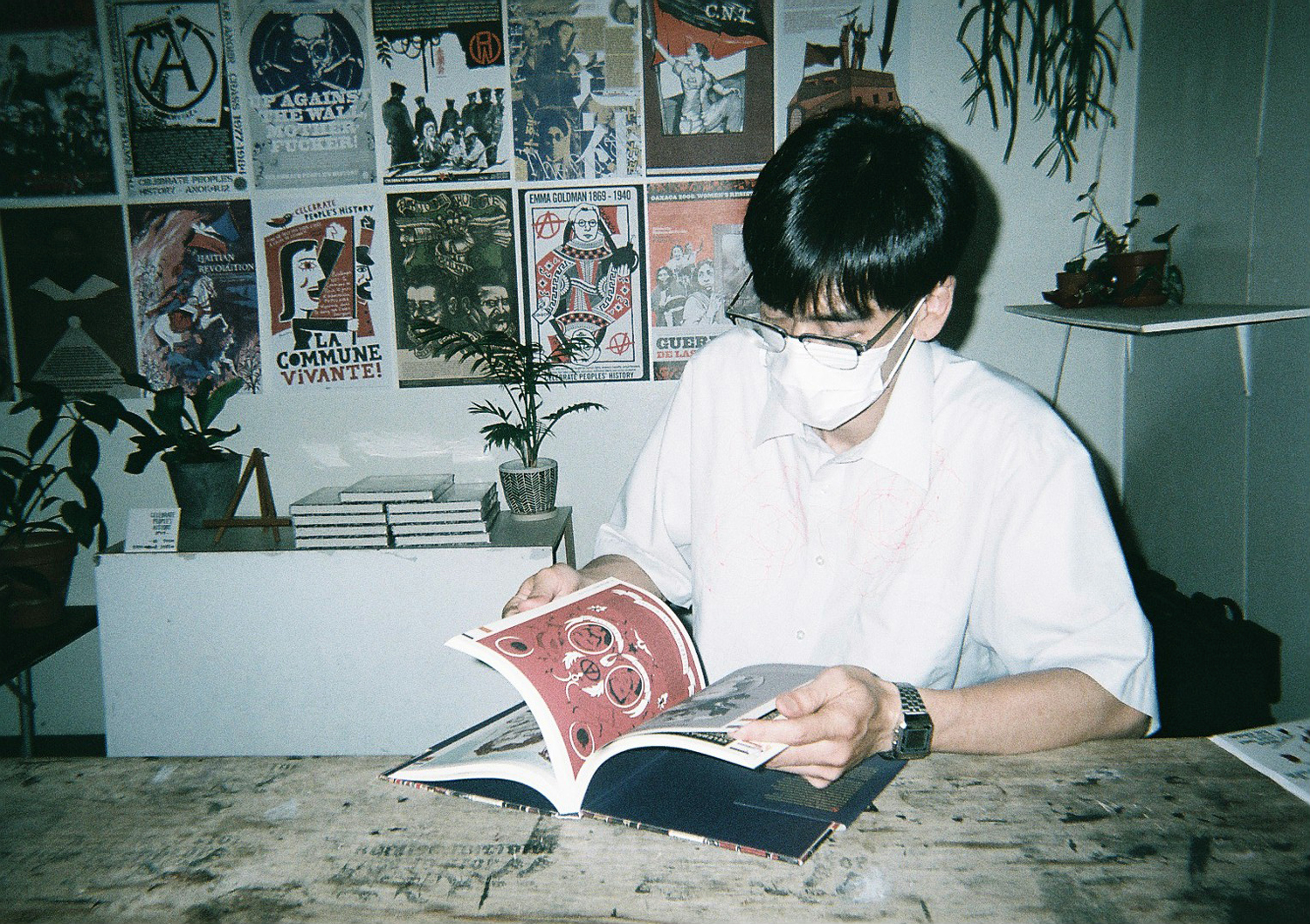 「そう!本当そう。自分の場合は、その頃から本を読むことも増えて、パンクではないけど、支配的な価値観に逆らって生きる人たちが、今の日本にもいるんだ、っていうのを知ったんです。例えば、ここの近くにある本屋さん“模索舎”とかで売ってるミニコミとかジンを読んだりして。適当にバイトして、その日暮らしだったけど、まぁ生きていればいいやと思っていたし、そういうミニコミとかジンに触れていたら、自分でも何かを発信したい欲求も出てきたんです。それで、ジンを作るようにもなった。せっかく学校を出ても、その知識とか技術を生かせないまま、路頭に迷う人っていうのは山ほどいて、同級生もほとんど故郷に帰ってしまったし、自分は東京出身だけど、何の技術も知識も身につけないまま、自活していかなきゃならなくなった。それでも、オルタナティヴな生きかたを実践したり、いろいろな社会的な問題と向き合っている人たちと出会えたおかげで、自分なりの人生を生きていけそうって思えた。ラッキーだったと思います」