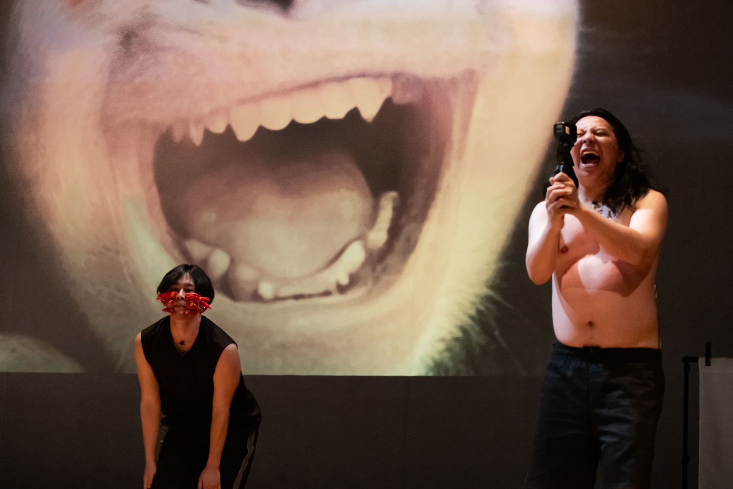 そんな人間の身体を用いながら、テクノロジーとの不条理な関係性、特に「暴力・性・死」を描くべく、伝統的な物語「さるかに合戦」に沿いながら、このダンスを踊ります。「六行会ホールでどのような『ダンス』をつくれますか?」をお題として、ダンス作品のドリームプラン(予算や実現可能性度外視の企画案)を公募する「かつてなく自由にダンスを名乗るための煙が立つ会」。2024年にスタートし、2年間のプログラムを経て、選出6組の中から最終ステージへと進出したJACKSON kakiによる作品が遂に上演される。