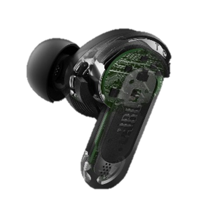 同機では、PENにカーボン素材「DLC (Diamond-Like Carbon)」をコーティングした10mm径振動板をダイナミックドライバーのユニットにフィーチャーし、「JBL」ブランドならではの音質を向上させているほか、ハイブリッド式ノイズキャンセリングにリアルタイムで周波数帯を調整する「リアルタイム補正」機能を追加。シーンに合わせて設定可能なJBL独自開発の「空間サウンド」機能も搭載し、外耳の構造特性を活かしたデザインで装着環境もステージを上げています。