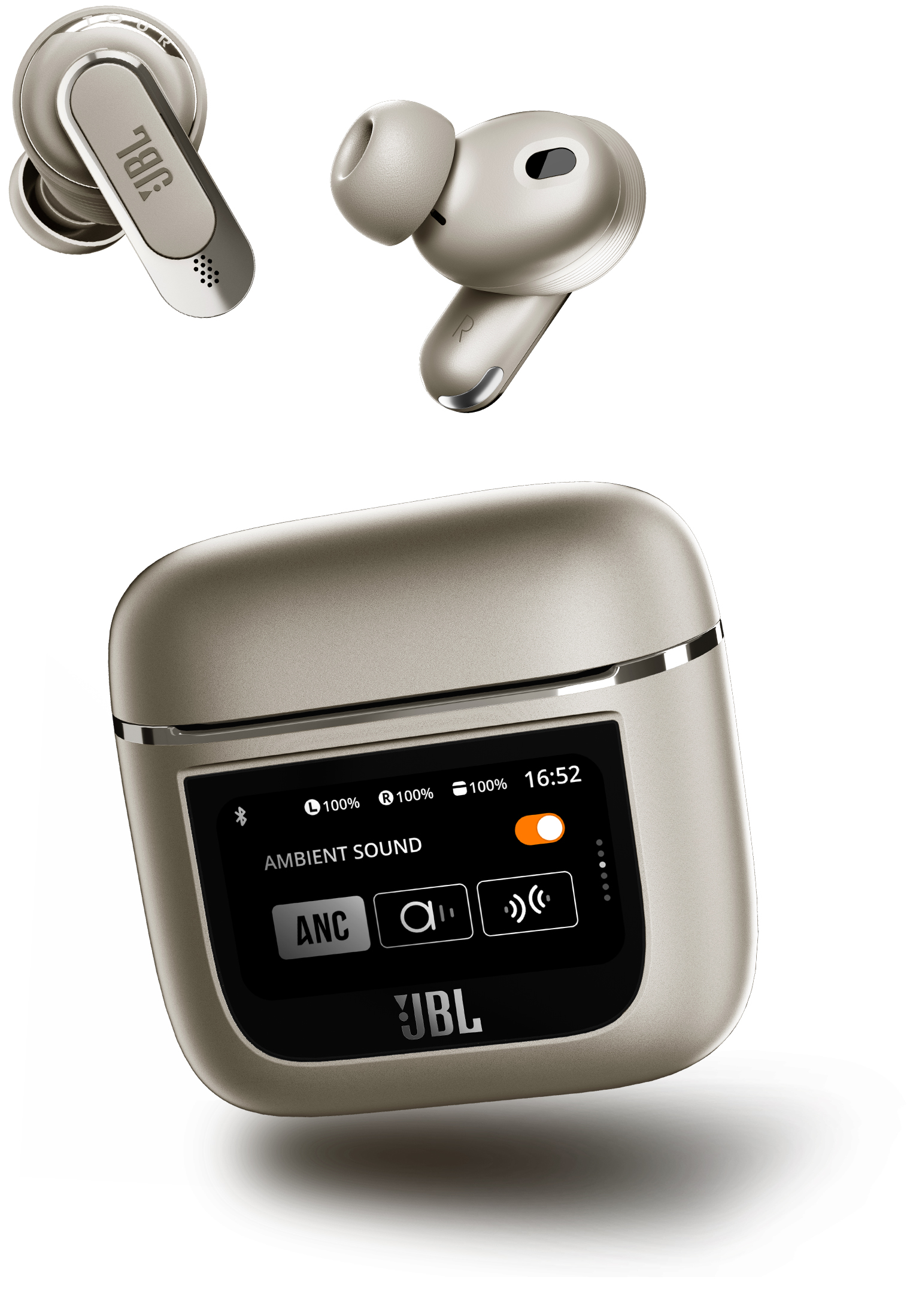 また、充電ケースへのタッチディスプレイ導入により、『JBL Club Pro+ TWS』以降好評を博しているパーソナライズ・アプリケーション「JBL Headphones」の機能をスマートフォンなしでも使用可能。より高度な機能を獲得するに至った「JBL Headphones」のホスピタリティを様々なデヴァイスで得られます。