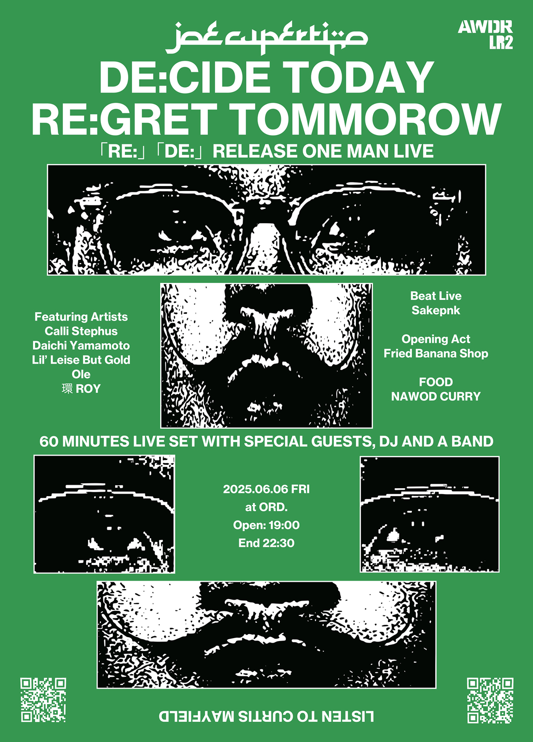 昨年6月発表のフル・アルバム『RE:』が好評を博し、今年2月には早くもニュー・アルバム『DE:』を発表して話題となっているJoe Cupertinoが、グランドオープンを5月31日(土)に控える東京・代官山の新スポット「ORD.」にて両作のリリースに伴う初のワンマン・ライヴ「DE:CIDE TODAY RE:GRET TOMORROW」を6月6日(金)に開催。