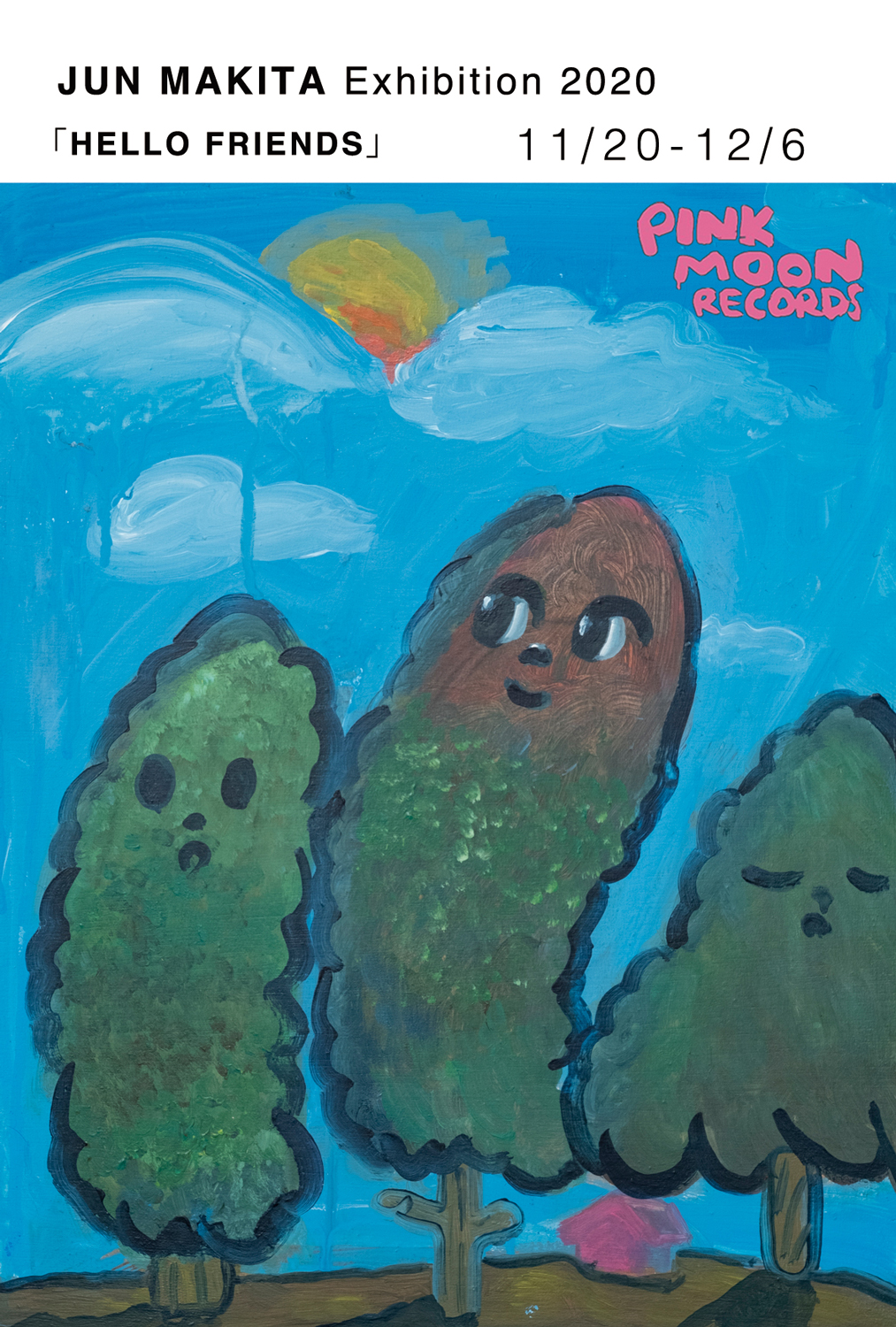 バンド“CAMISAMA”の一員としてのみならず、SAKA-SAMA『わんわん』、曽我部恵一『LOVE LETTER』などのカヴァー・アートを手がけ、ペインター / イラストレーターとしても活動する牧田 純が、ソロ・エキシビション「JUN MAKITA Exhibition 2020 “HELLO FRIENDS”」を東京・下北沢 PINK MOON RECORDSにて11月20日(金)から12月6日(日)まで開催。入場無料。