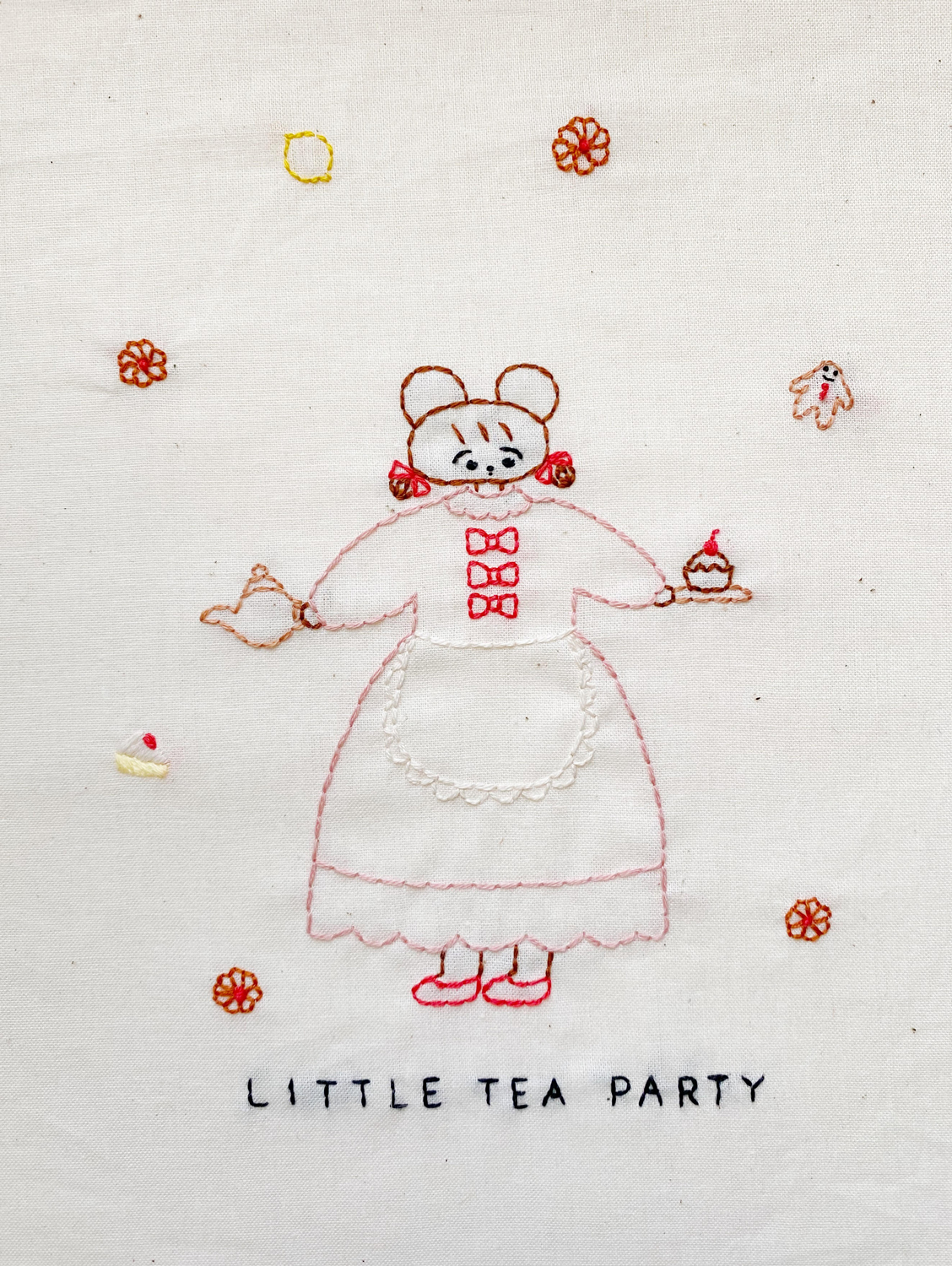 2020年に刊行した著書『刺繍でABC』(文化出版局)が好評を博している刺繍アーティスト・Kanae Entaniが、ソロ・エキシビション「Little Tea Party」を10月7日(金)から9日(日)まで東京・代々木上原 AMB100貨 play groundにて開催。