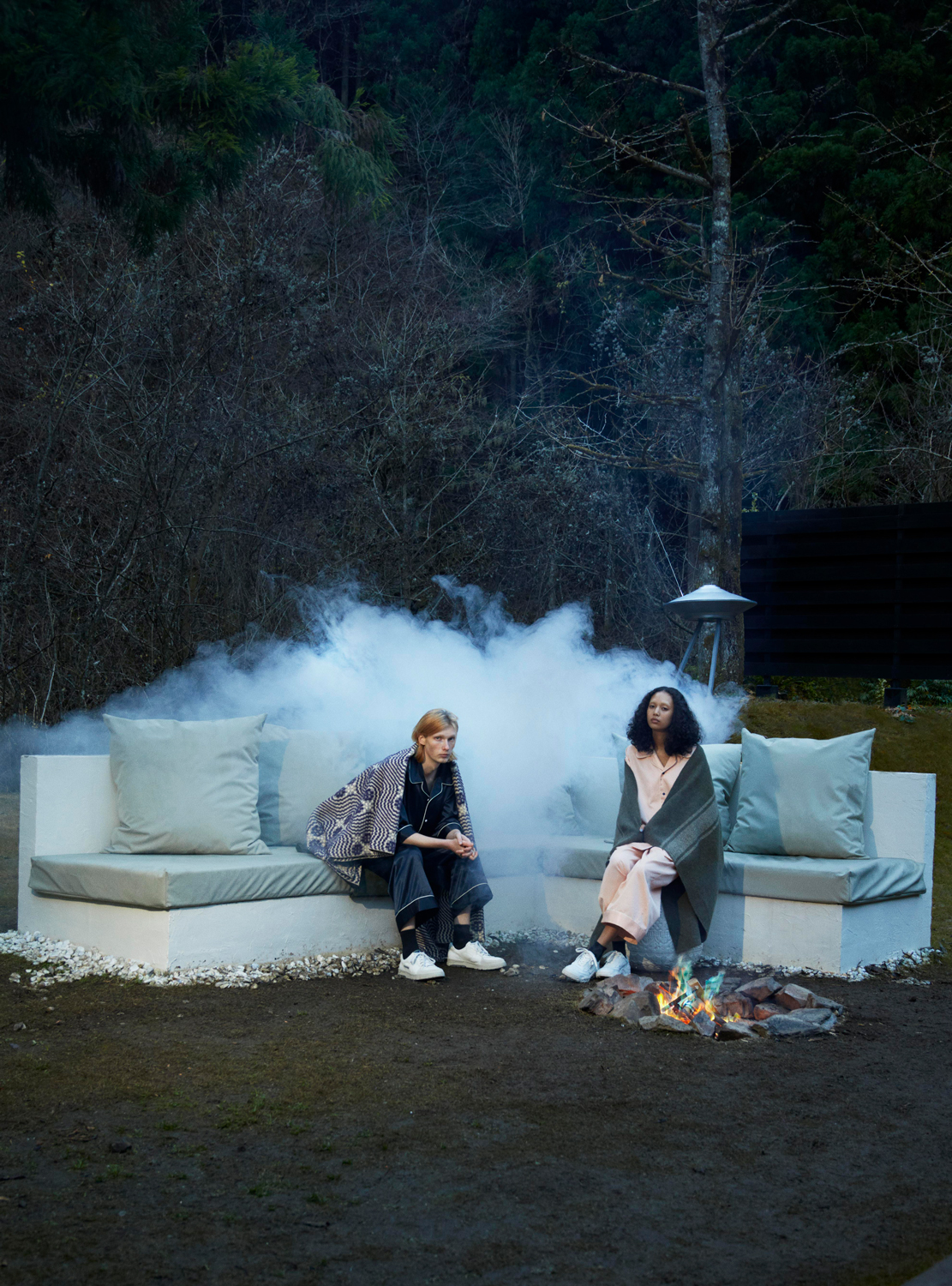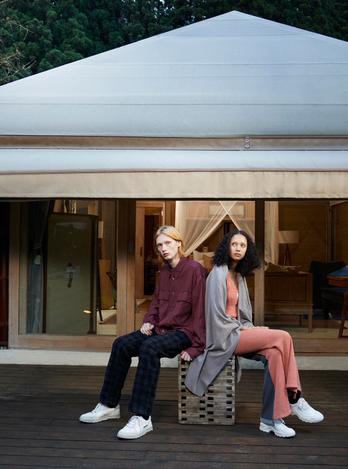 東京・檜原村のプライべート・グランピング施設「KEIKOKU GLAMPING TENT」が、ファッション・ブランド「CYDERHOUSE」を手がけるデザイナー・Yuji Okamotoのディレクションで新ヴィジュアル「UFO is Glamping」を公開。“UFOは究極のグランピングである”がキーワードのストーリーテリングとなっている同ヴィジュアルでは、Haruka Kogure(Endplaydevice)が制作したUFOのオブジェを使用。オブジェは、施設内にそのまま設置されています。撮影は干田哲平、スタイリングはTatsuya Shimada、ヘアメイクはNarumi Tsukubaが担当。