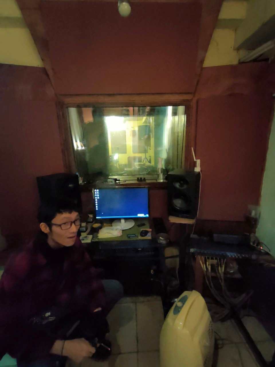 あっという間に時間が来たので、Zieと2人で電車に乗ってスタジオ「類比裝置音樂工作室」へ。台北の隣の新北市に位置し、REVOLVERから20分かからないくらいの距離。池袋から和光市へ行くような感覚ですかね.。閑静な住宅街にあるアパートの地下室がスタジオになっており、夜遅かったせいもあってかなり見つけづらかったです。Chen(Chen Yi 陳逸 | TOXIC BALD, OOZEE | TWIN PEAKS Records)の友達が運営している場所らしく、明らかにストーンドしたかたがたとめちゃくちゃ元気な犬が出迎えてくれました(笑)。いわゆる日本の練習スタジオのような感じではなく、学校の部室のような雰囲気で、パンクやロックが好きな若者の溜まり場という感じがして居心地がよかったです。Chenといろいろ話しているうちに、OkamotoとMiuraが到着。一刻も早くREVOLVERに戻りたかった我々は15分くらいで練習を済ませ、Willyに運転してもらって再び台北市内へ戻りました。