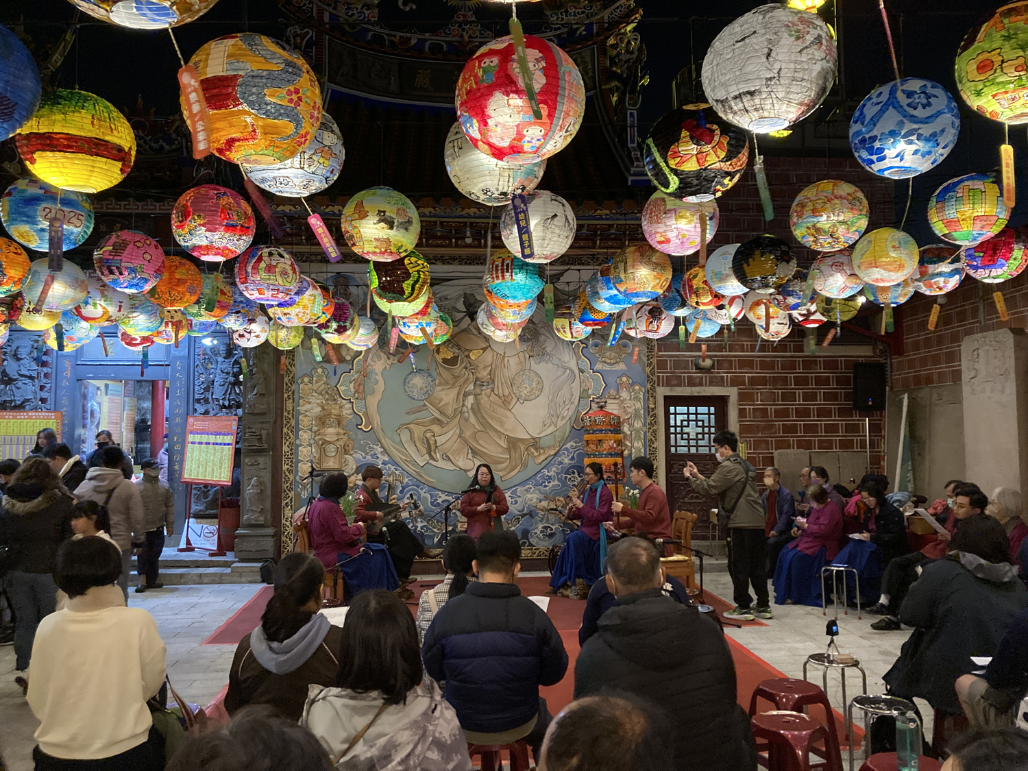 転換時間にせっかくなので近隣を散歩してみると、大量の提灯がぶら下がった通りを発見!どうやらたまたまランタン・フェスティヴァルの開催期間だったらしく、期せずして個人的に興味があった台湾のランタン文化を垣間見ることができて感激しました。そのまま奥に進むと「普濟殿」という、台湾で最も古い王爺廟(中華圏における民間信仰の祭祀施設)のひとつがありました。その美しい造形もさることながら、民族楽器のストリート演奏なども行われていて、見どころ満載でした。散歩して大正解……。