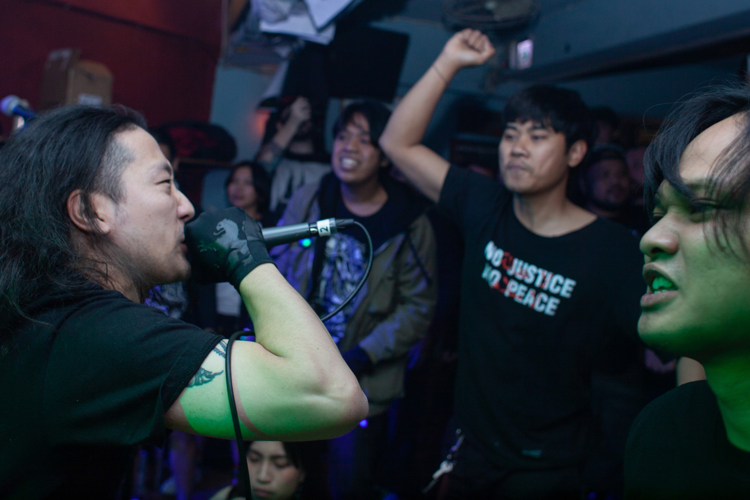 会場に戻るとトッパーの時点でかなりのお客さんが。しかも、半分以上は東南アジア系のかたがたで、自分は一体今どこにいるんだという感覚に。それもそのはず、1バンド目のSOUTHERN RIOTは台湾・高雄市を拠点とするインドネシア人によるメタルパンク・バンド。台湾には昔からたくさんのインドネシア移民がいるそうで、その中でもパンク・コミュニティが形成されているようです。そういえば前回のツアーでの台中公演のときも、インドネシアから観に来たという、PAIN OF TRUTHのシャツを着たハードコア・キッズがいたので、けっこう気軽に行き来しているのかもしれません。