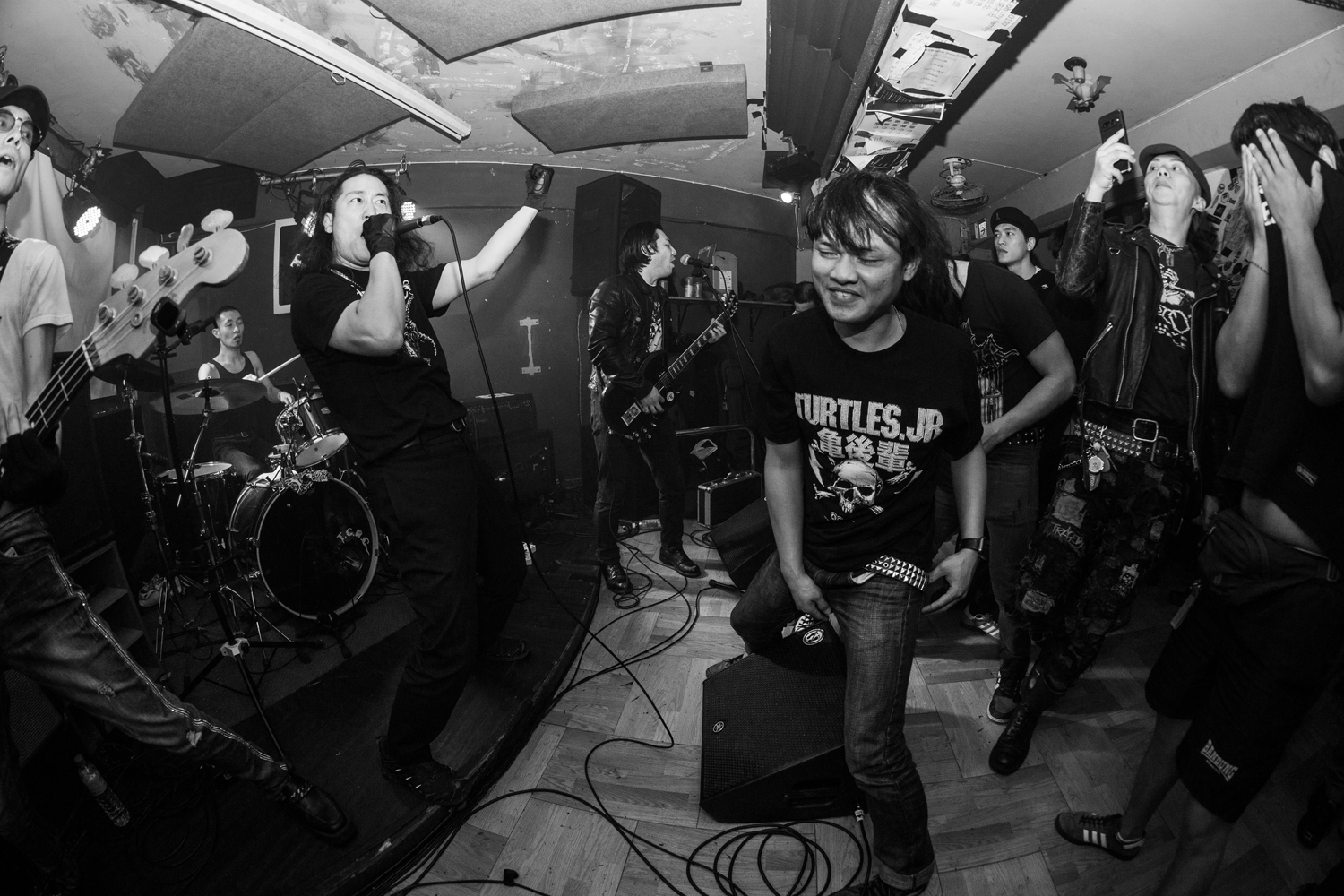 そして我々KLONNSの出番。正直体調は最悪でしたが、気合でぶちかましました。かなりいい反応をもらえたと思います。地方都市としてはけっこう客入りも良かったのではないでしょうか。中にはフィリピンからわざわざ観に来てくれたかたがたもいて嬉しかったです。いつかマニラでもプレイしたいですね。終演後に台中市在住のインドネシア人の女性から、『INDIE PULSE』というファンジンの取材ということで、まさかのその場でショート・インタビューを収録されたのですが、全然言葉が出てこず(笑)。すいませんでした……。他にも前回の台中公演に来てくれたジャック・スパロウみたいな見た目のお兄さん、ウサギ耳付けたゴスロリ女性と極限までパンプアップした男性のカップル(?)など、お客さんの濃さが異常で見どころ満載でした。やはりどの国も南部が深いのかもしれない……。