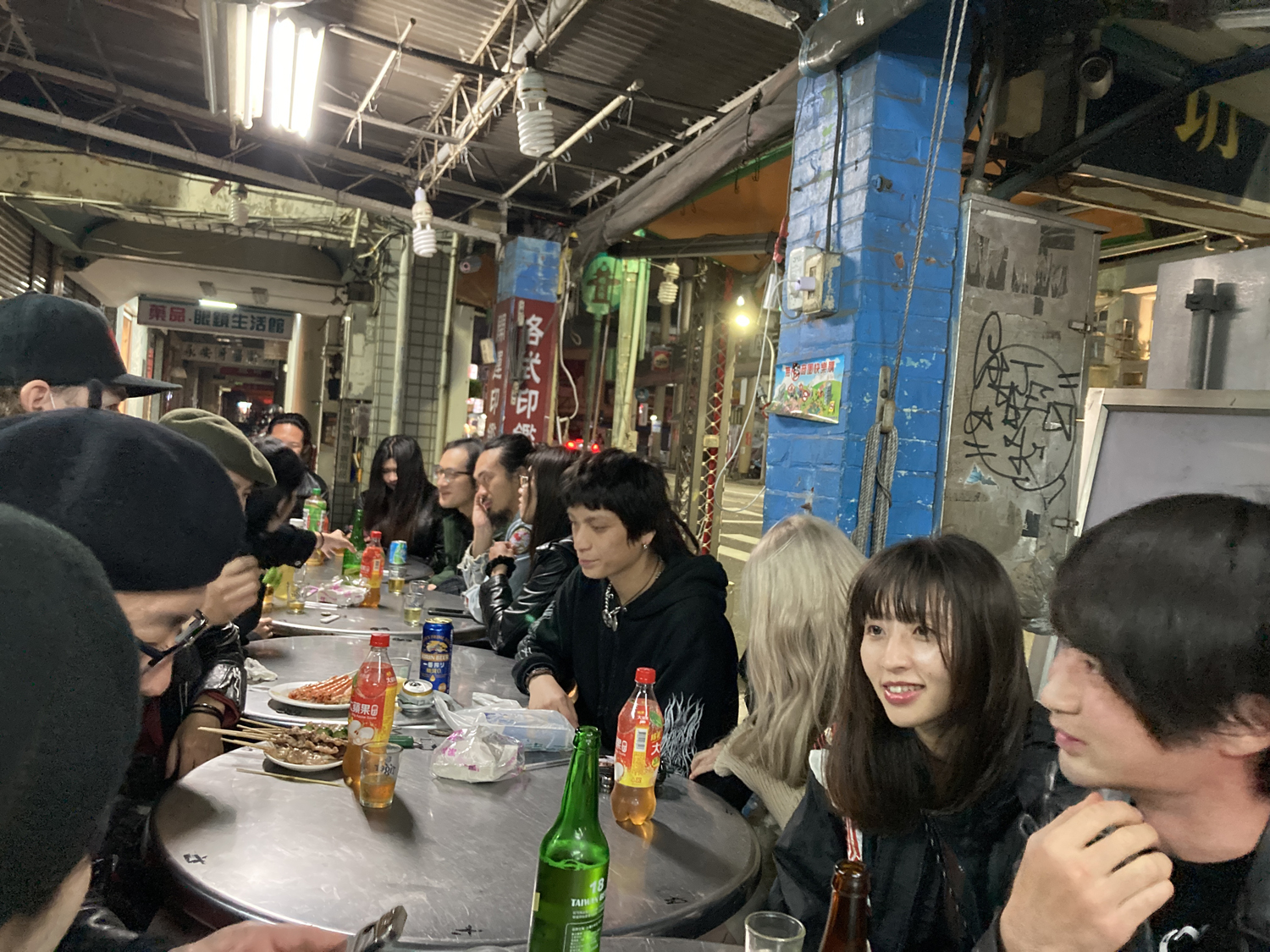 台湾パンク・シーンにおいては終演後にお客さんも含めてレストランへ移動して打ち上げ、という流れが定番なのですが、この日も例に漏れずその流れに。今回は台湾式の焼き鳥屋にイン。ちなみに台南の料理は台北とはかなり味付けが違って、砂糖多めの甘い味が基本らしいです。しかし、焼き鳥は塩味で頼んだので、特に甘味は感じず(笑)。台北のみなさんは台南のほうが圧倒的に飯がうまいと言っていましたが、個人的には甲乙付け難いという感じ。余談ですが、打ち上げの席で得た情報によると、台湾最東部の都市・台東には台湾原住民のかたがやっているバンドやそのシーンがあるそうで、かなり興味をそそられました。BLADEのメンバーも「次は高雄でもやろう!」と言ってくれたので、ここまで来たら台湾の主要都市全制覇したいですね。あと、ビンロウ(台湾名物の嚙みたばこ)を齧ってからビールを飲むと甘く感じるという、どうでもよすぎる豆知識も得ました。う~ん、深いですね……。