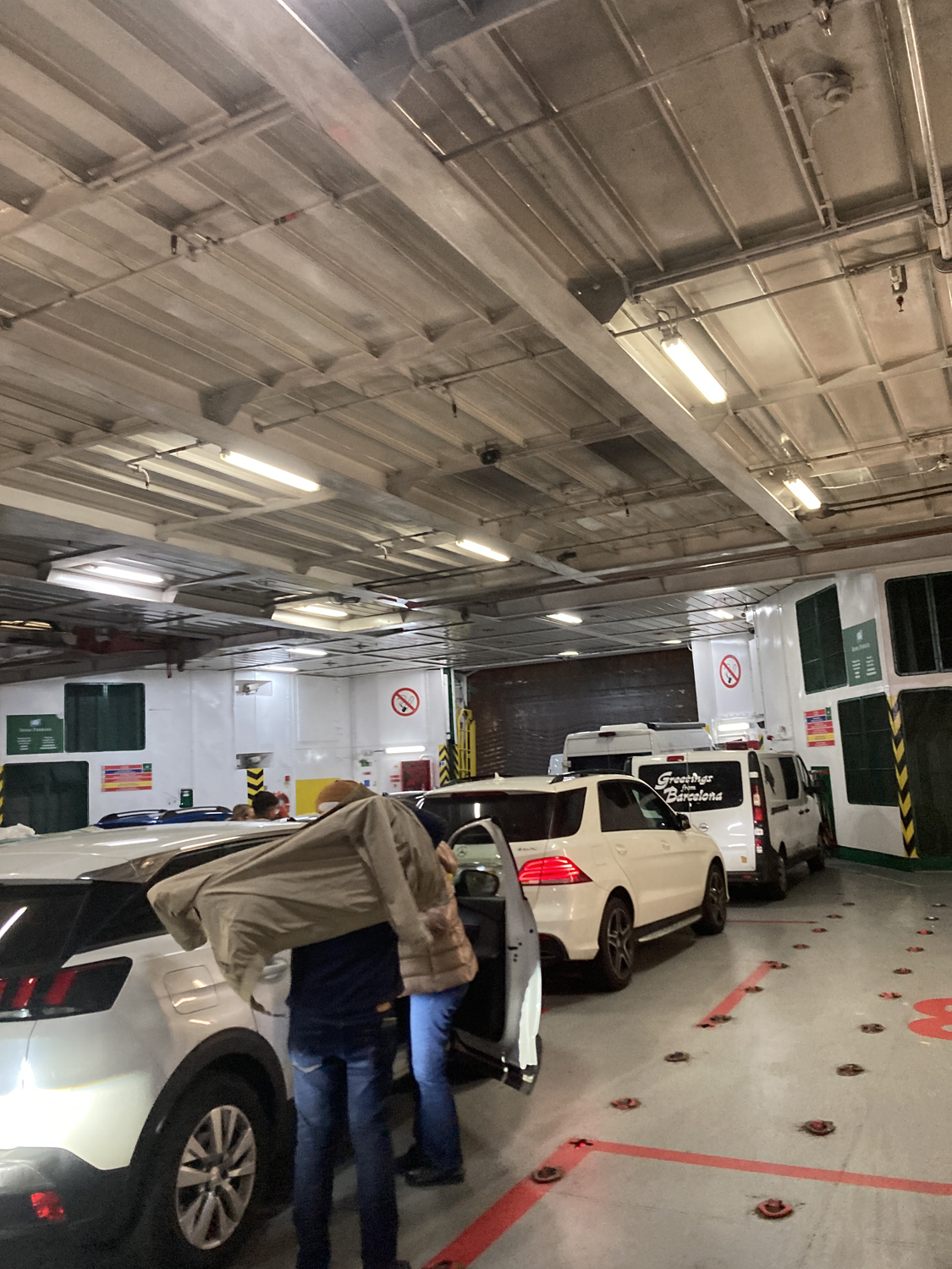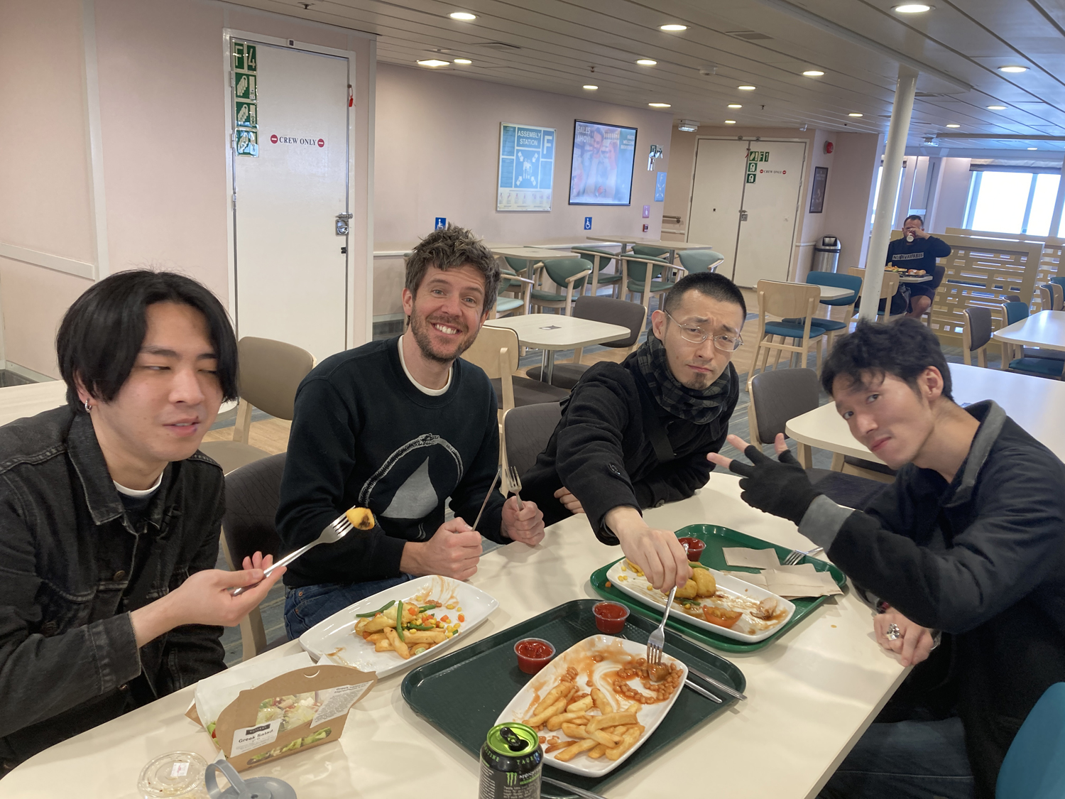 カレー港に着くと、各フェリー会社毎に分かれたレーンに並んで、チェックインからのイギリス入管による入国審査。今回、プロモーターの計らいでイギリスでの就労ビザを取得していたので、手続きの関係で全員別室(というか別の施設)送りに。普通に緊張する……。少々時間かかりましたが、問題なく通過するも、よく見たらフェリーの出航時間過ぎてる……。でも特に追加料金もなく次の便に乗せてもらえました。予約したとき、課金制で時間変更オプションとかあったけど、いらないじゃん(笑)。