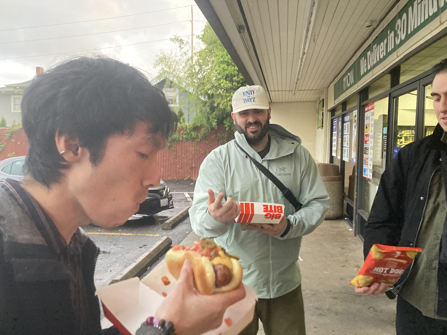機材の搬入が終わり、近所のセブンイレブンで食料や水分を調達することに。見慣れないエナジー・ドリンクやスナックにテンションが上がりました。Caseyのレコメンはホットドッグ。引き出しからパンを取り出してセルフでウィンナーを挟み、トッピングしていく豪快なスタイルにびっくり(笑)。でも最近は日本でもホットスナックを客がセルフで取り出すようなコンビニもありますね。味は普通においしかったです。日本のセブンでも売ってくれないかな……。海外に行ったら必ずゲータレードを飲むと決めているのでひとまず購入。なぜ日本では販売終了してしまったのか……。それにしても、アメリカに限った話ではありませんが、海外コンビニでエナジー・ドリンクを同じものを2つセットで買うとディスカウントされるサービスが各国で散見されるのですが、あれはなんなんだろう?めちゃくちゃ安く買えるので、容易くカフェイン中毒になってしまいますね。