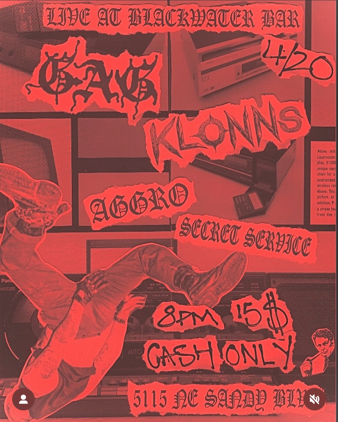 そして我々KLONNSの出番。途中機材トラブルがあってストップする場面もあったのですが、終始すさまじい盛り上がりで素直に感動しました。キッズたちのモッシュ、エグすぎた。ちなみにツアー・バンにはバックライン一式を積み込んだのですが、会場に借りられる機材がある場合は借りて、すべての機材を毎回降ろしてセットアップする感じではやりませんでした。これがUSハードコア・シーンの通例なのかはわかりませんが、GAGはそういうノリでやっているようです。この日はベーアンは地元バンドが持って来てくれたものを使わせてもらったのですが、超がつくほどの安物だったらしくお陀仏に……。すまんことをした……。