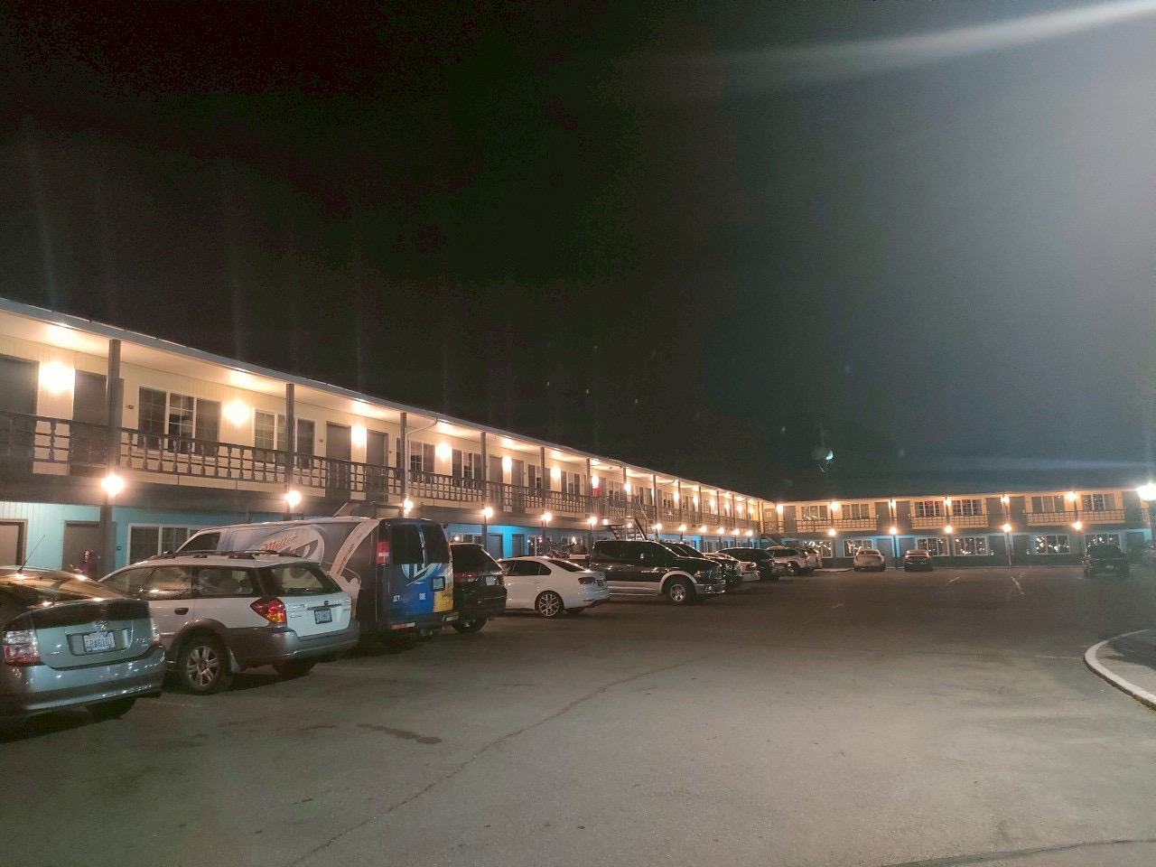 撤収時間となり、今夜はポートランドには泊まらず、数時間移動したところのモーテルに宿泊するということになりました。これが噂に聞いていたアメリカツアーあるあるの深夜移動!確かに一度に運転する時間を短縮出来るし、宿泊費も都市部を離れた方がおそらく安いのでかなり合理的。みんなお酒も飲まないし。翌日のカリフォルニア州サクラメントはポートランドから約930kmの彼方。東京から福岡くらいの距離はあり、一気に運転するには相当な根性が必要なので、むしろ他に選択肢はないですね。