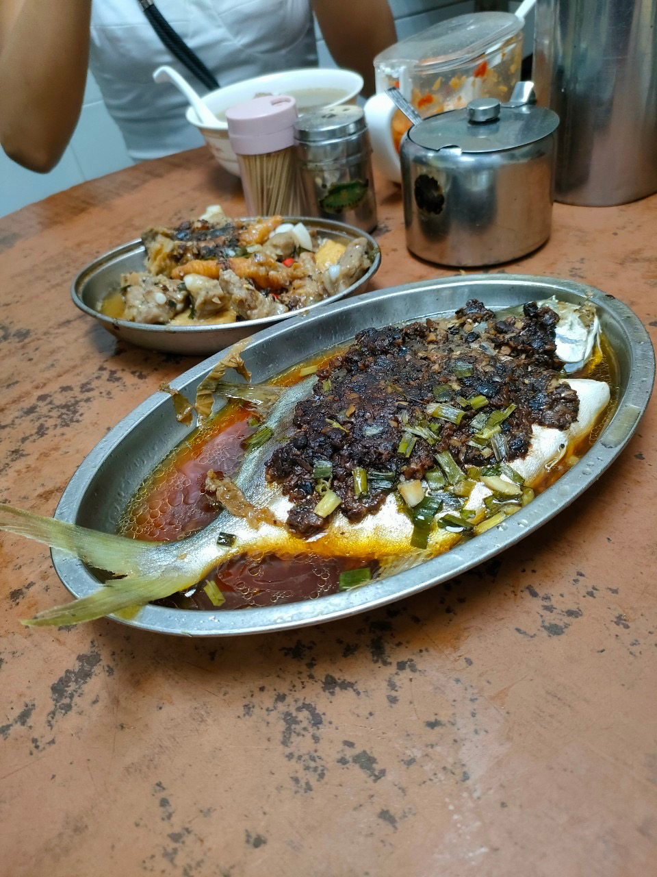続いて「恒達油渣麵」という地元民御用達な雰囲気のレストランへ。骨付き肉や魚介がメイン食材のディープめな中華料理店なのですが、まさかの作り置きしてある料理を入口付近の引き出しの中から取り出すスタイル。気になるお味は薬膳的な風味、かつかなりプリミティヴ……。ちなみに食べ終えた骨はテーブルの上に捨てて、最後にまとめて空いた皿に集めるのが一般的とのこと。つまりテーブルの上は基本的にかなり不衛生なのでスマホ等は置かないようにしましょう。
