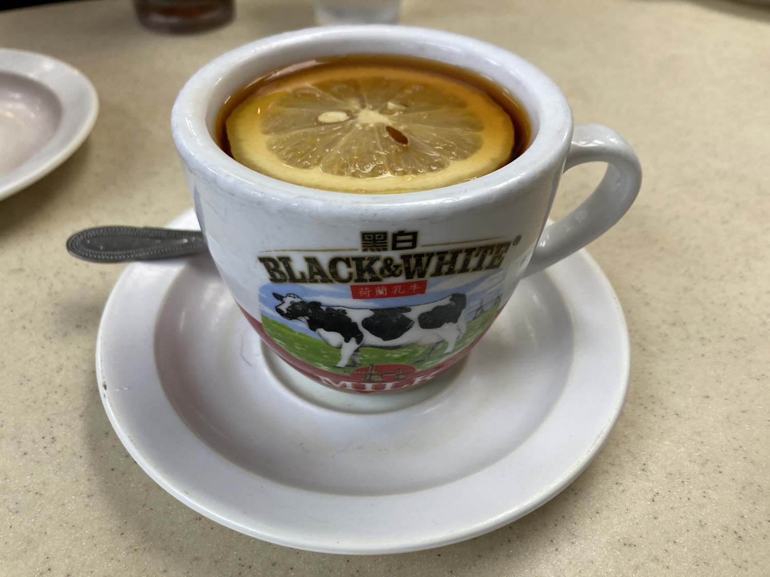 その後、近くの喫茶店へ(店名は残念ながら失念)。香港式の紅茶があるとのことでオーダーしてみたのですが、あまりにも濃い……!カフェインを原液で飲まされているような気分……。お口直しのつもりがさらにダメージを受けてしまいました(笑)。しかし店内はまさに90年代の香港や台湾の映画に出て来そうな、白い蛍光灯がギラつくレトロ飯店という雰囲気で趣がありました。