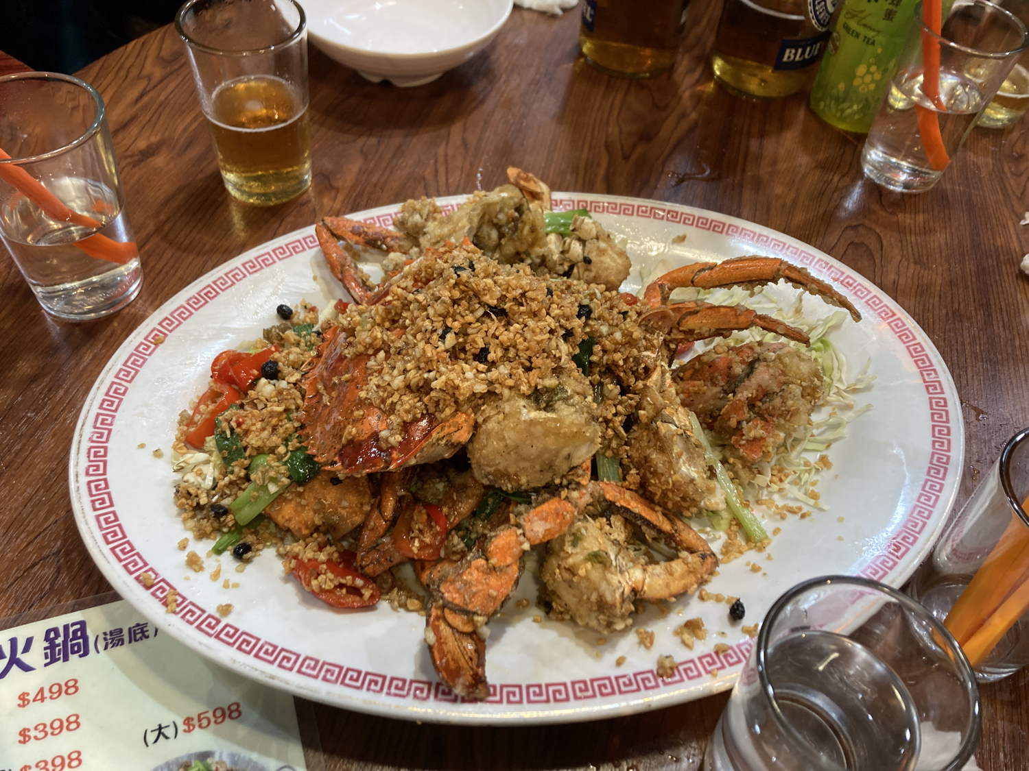 この時点でかなり満腹だったので、料理はほとんど手をつけずひたすらビールを飲んでいたのですが、ここでもカルチャーショックな出来事が。テーブル上のピッチャーにはお湯が入っており、不思議に思っていたのですが、これは飲むためではなく、なんと取り皿や箸を洗って殺菌するためのお湯らしい……。驚く我々をよそに皿と箸をその場で洗い始める香港チーム……。そういえば先刻行った喫茶店でもピッチャーにお湯入ってたな……普通に飲んでしまった(笑)。