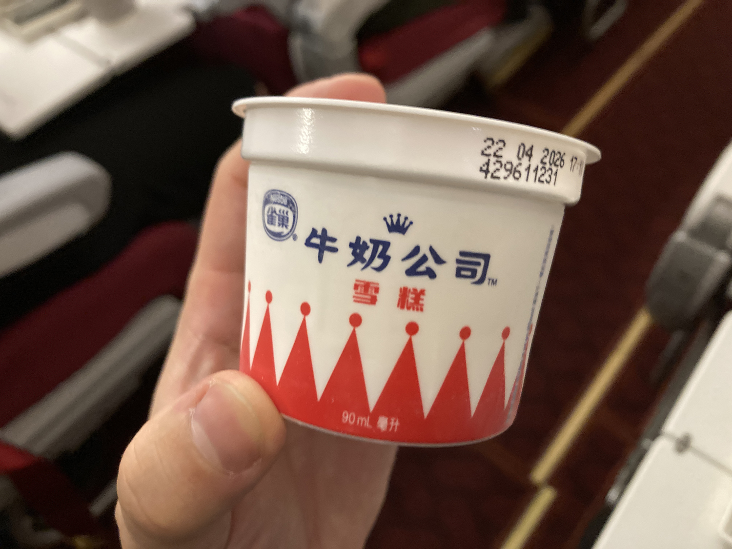 帰りのフライトも行きと同じく香港航空をチョイスしましたが、やはり快適。機内食は普通においしいし、デザートのアイスまでくれて言うことナシです。