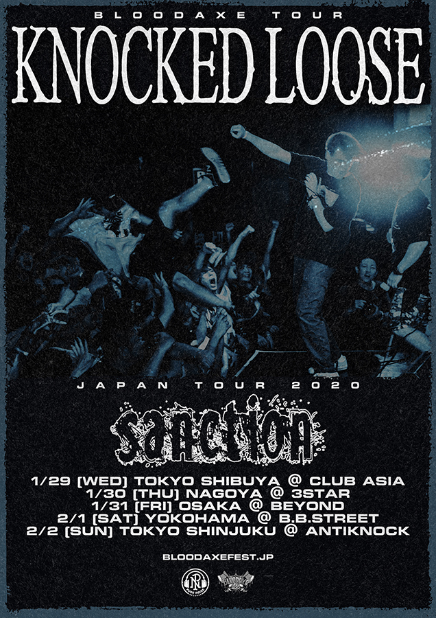 今年8月に2ndフル・アルバム『A Different Shade Of Blue』を「Pure Noise Records」から発表し、9月には「BLOODAXE FESTIVAL 2019」出演のため2度目の来日を果たしている米ケンタッキー・オールダムのブルータル・ハードコアKNOCKED LOOSEと、同じくPure Noise Recordsから7月に初のフル・アルバム『Broken In Refraction』を発表している90sスタイルのメタリック・ハードコアSANCTIONが、2020年1月に来日。