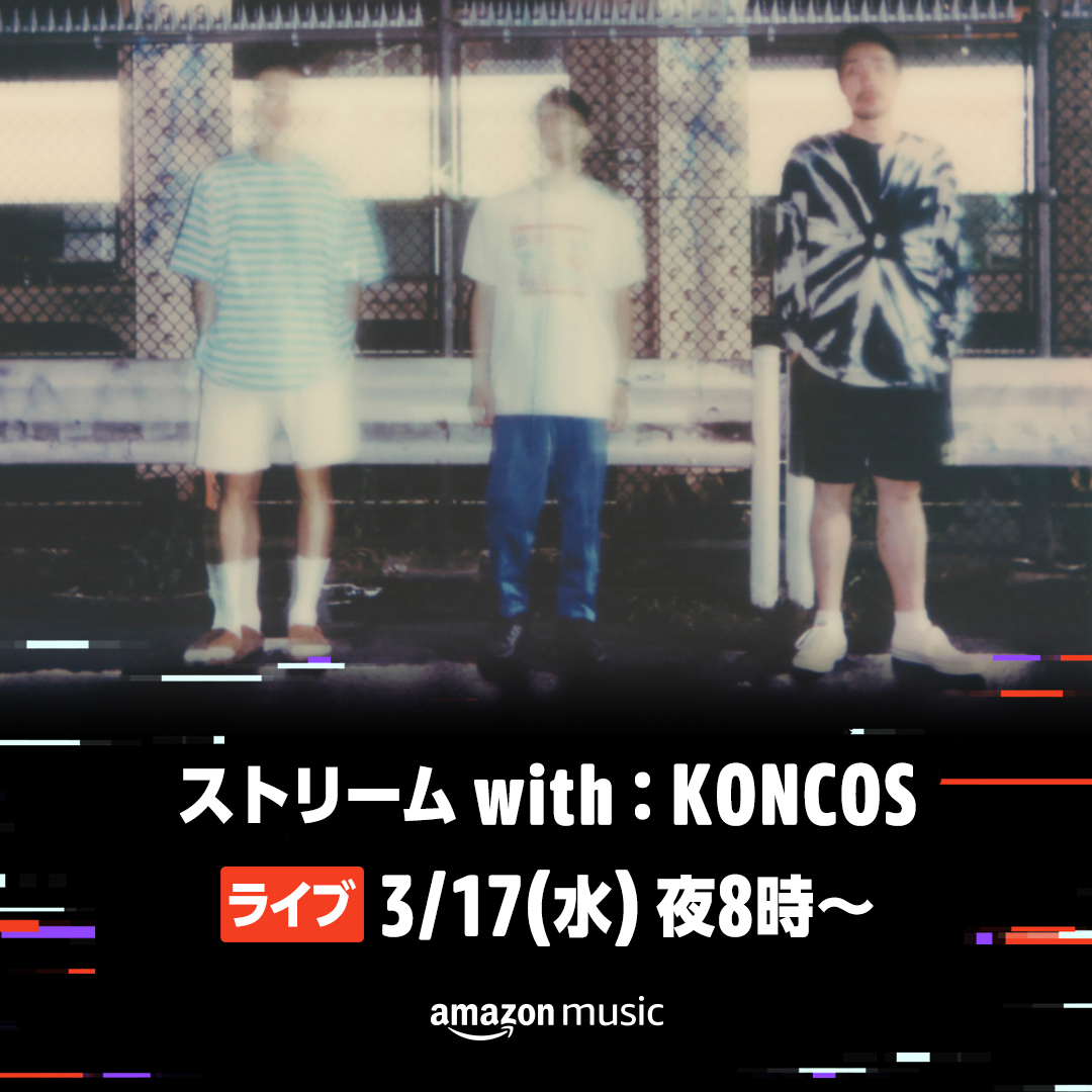 3月24日(水)発売の4thアルバム『Music Is Love』から収録曲「Magic」「Everyday」「Sing」の先行配信を3月10日から開始したKONCOS(佐藤 寛 + 紺野清志 + 古川太一)が、ライヴストリーミング・プラットフォーム「Twitch」のAmazon Music Japanチャンネルにてライヴ「ストリーム with: KONCOS」を3月17日(水)20:00より配信。アーカイヴはありません。