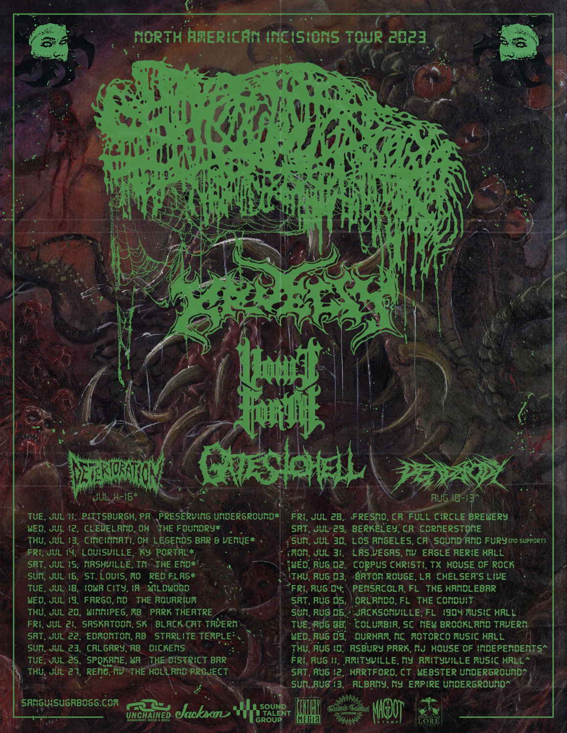 「バンドって自分がライヴすればコネができるから、それを生かせば多少なりともお金に替えられるんで、やっぱりやる奴は多いっすよね。普通にブッキング・エージェントだけをやっている奴もいるんですけど、そういうのはもう、けっこうレベルの違うバンドっていうか。ウチの今のエージェントをやっている奴はMORBID ANGELとか、主にメタル・バンドのエージェントをやっているんですけど、そういうバンドになると1本につきギャラが数万$とかになるんで、その10%でも数千$もらえるんですよね。そいつはアンダーグラウンドの音楽自体まで好きな人なんで、俺らなんてオマケみたいなもんでもやってくれていますけど、その気を出せばウチもそういうライヴに放り込めるわけですよ。だから、他のエージェントをどれだけ知っているかと、どれくらいデカいバンドを扱っているかっていうのが強みになるっていうか」
