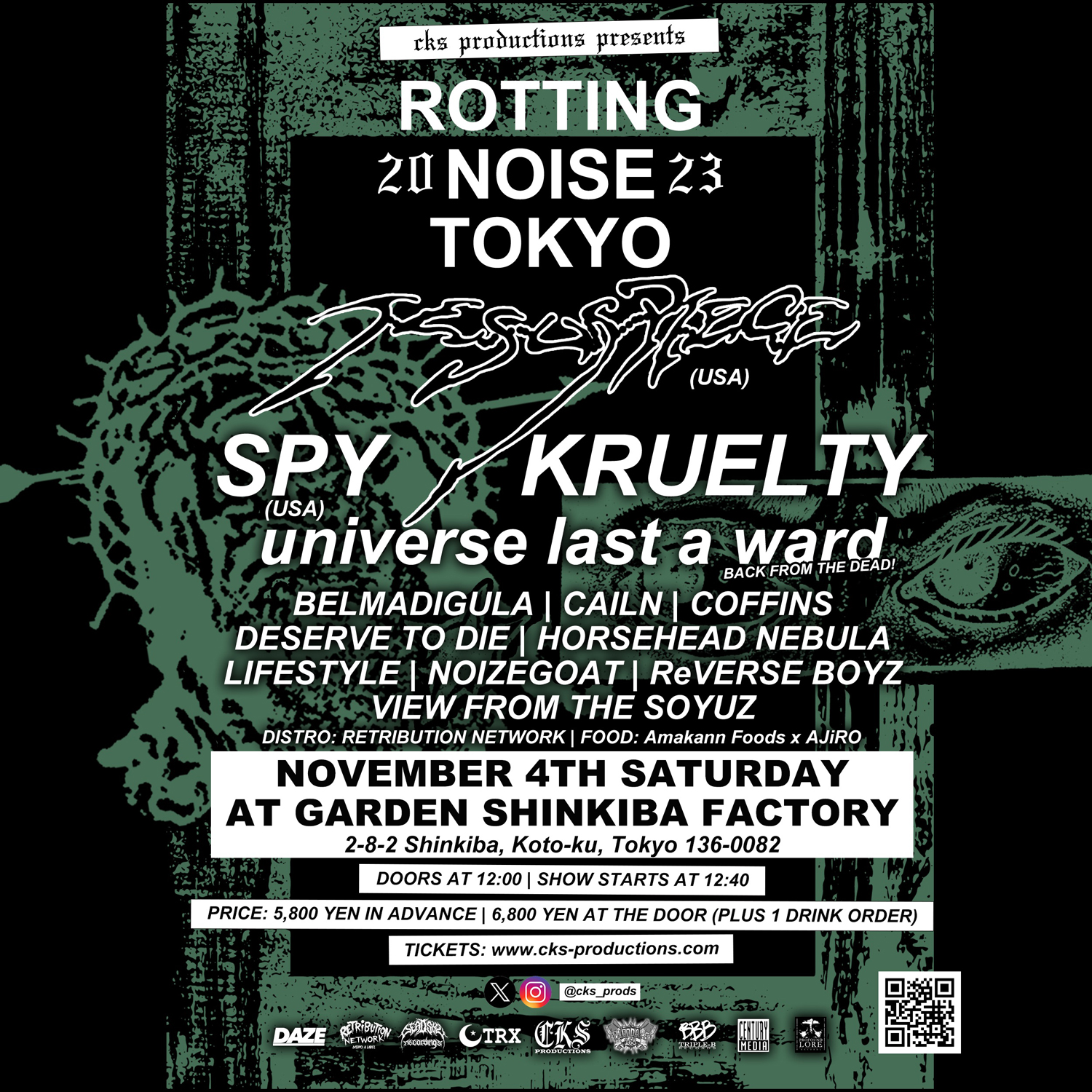 BELMADIGULA / CAILN / COFFINS / DESERVE TO DIE / HORSEHEAD NEBULA / JESUS PIECE / KRUELTY / LIFESYLE / NOIZEGOAT / ReVERSE BOYZ / SPY / universe last a ward / View From The Soyuz
