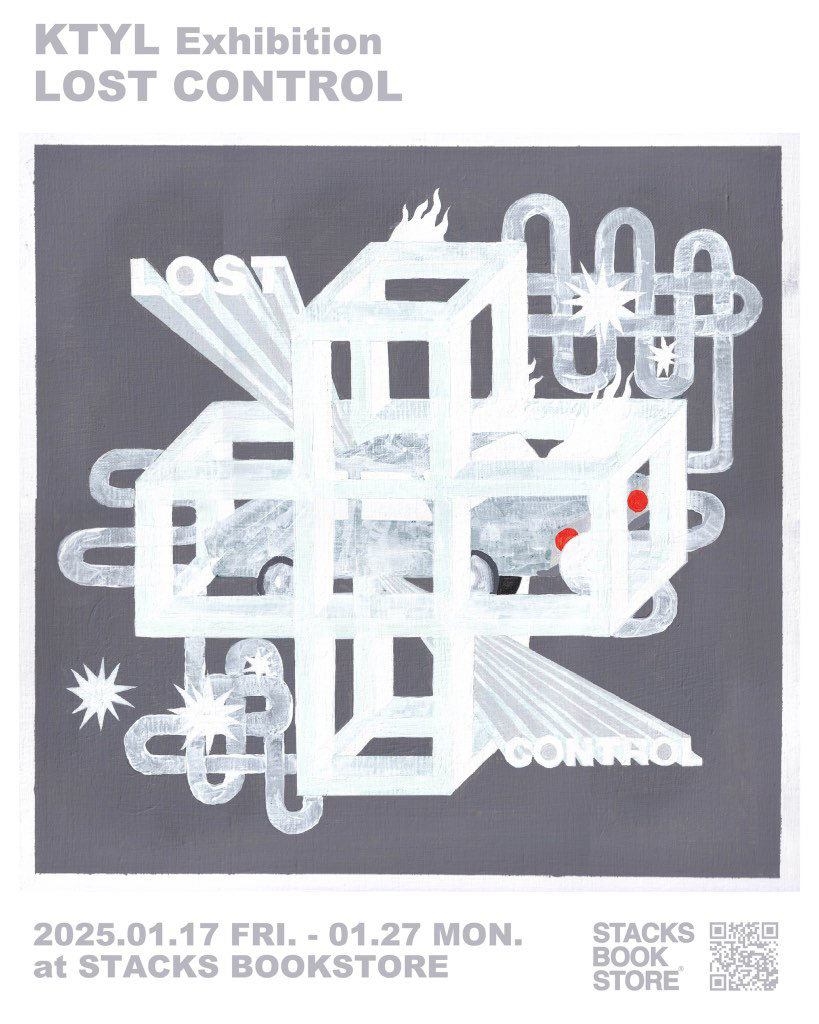 stacks bookstoreには「DREAM OF YOU」(2022)、「SHUT THE DOOR」(2023)に続いて約2年ぶりのの出展となる「LOST CONTROL」では、新作を一挙展示。stacks bookstoreとのコラボレーションによるマーチャンダイズも販売されます。