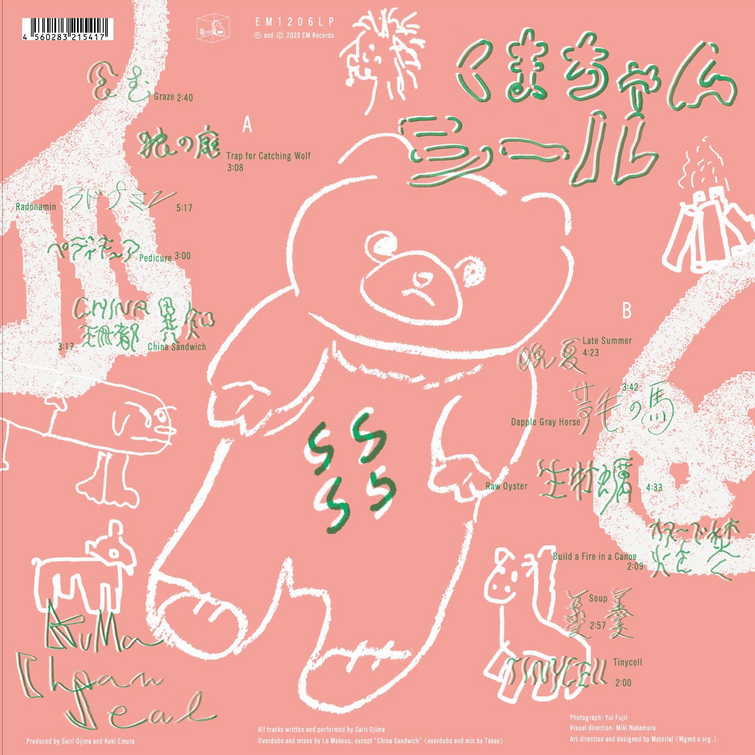 「くまちゃんシールをちゃんとやりだしたのは2017年です。Hoge Tapesからカセットで『朝昼兼用』を出した頃くらいから。ちょうど関東に越してきた時期ですね。大阪にいた頃は、普段は働きながら、necoもやって、CASIOもやって、EMERALD FOURでは歌も歌って、いろんなことがぐちゃぐちゃになって自分でも何がしたいのかよくわからなくなっちゃっていて。こっちに越してきてすぐは仕事もしていなかったから、ちょっと自分的に整理がついたので、ソロのカセットを作ったという感じです」