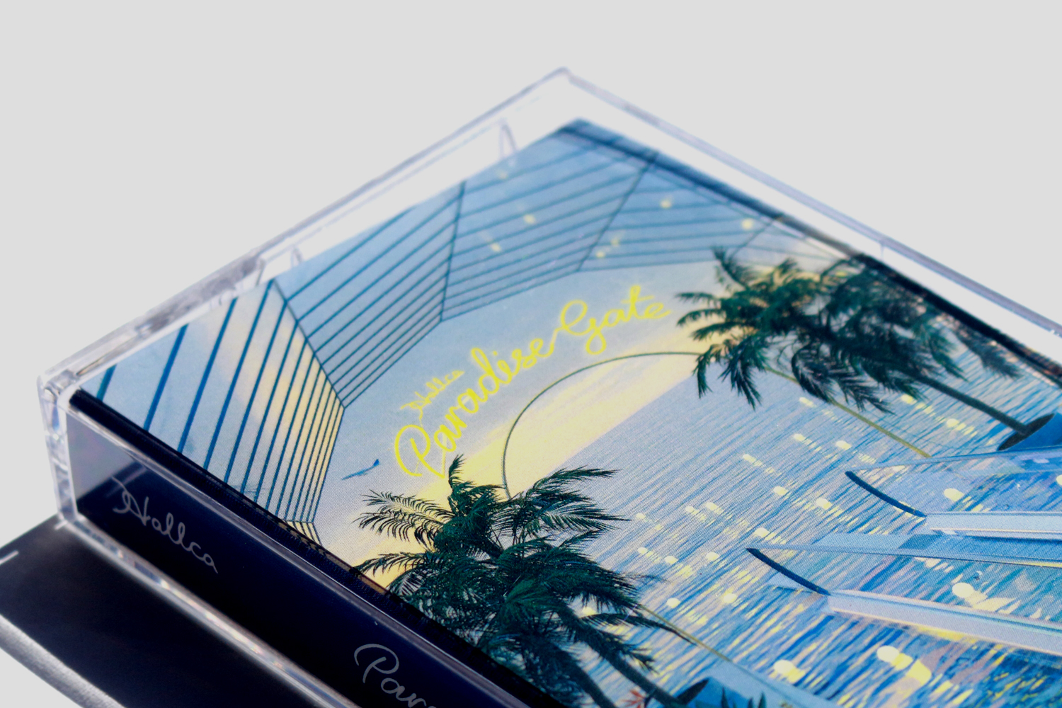 カセットテープ化にあたり、アキツユコ、角銅真実、柴田聡子らの作品を手掛け、今年は折坂悠太によるベルリンでの録音が話題を呼んだエンジニアとしてのみならず、美術家としても世界的に注目を浴びる大城 真(BasicFunction | 夏の大△)がHALLCAの歌の魅力を知るひとりとしてフォーマットに合わせてマスタリング。アートワークは、オリジナルのカヴァーを制作したcpnnn自身の手でカセットテープのサイズにアレンジされたもの。大城同様インターナショナルに活動する美術家であると同時にDJとしても活躍するcpnnnならではの、音楽から立ち上がる世界観に寄り添ったヴィジュアルが『PARADISE GATE』を一層特別なものにしています。