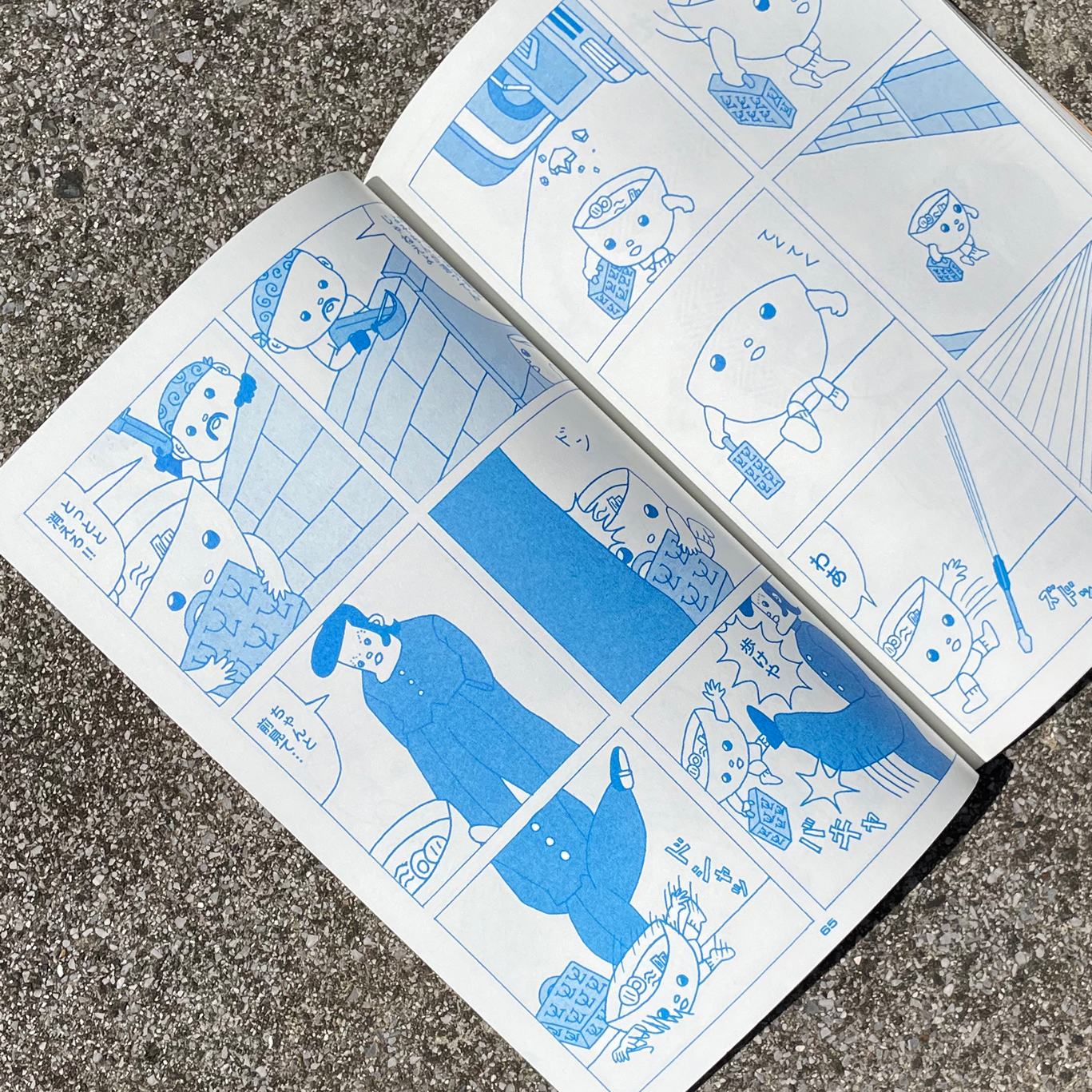 諸行無常に不確定性の展開を見せる物語や演出は、沖が影響を受けた音楽、映画、ファッションなどの文化的要素の断片が散りばめられたもの。中面をリソグラフでプリントしたフィジカル版の装丁も、沖にとって極初期のインスピレーション源である1980〜90年代の少年漫画を想起させるノスタルジックな風合いとなっています。ブックデザインは、QUEER NATIONS名義での音楽活動でも知られ、千紗子と純太、快快、加納エミリ、くまちゃんシール、山本精一、VIDEOTAPEMUSICらのカヴァー・アート、マーチャンダイズ、フライヤーや、「loosejoints」「VIVA Strange Boutique」のアパレル・デザインなども手がけるMATERIAL(MGMD A ORG.)が担当。