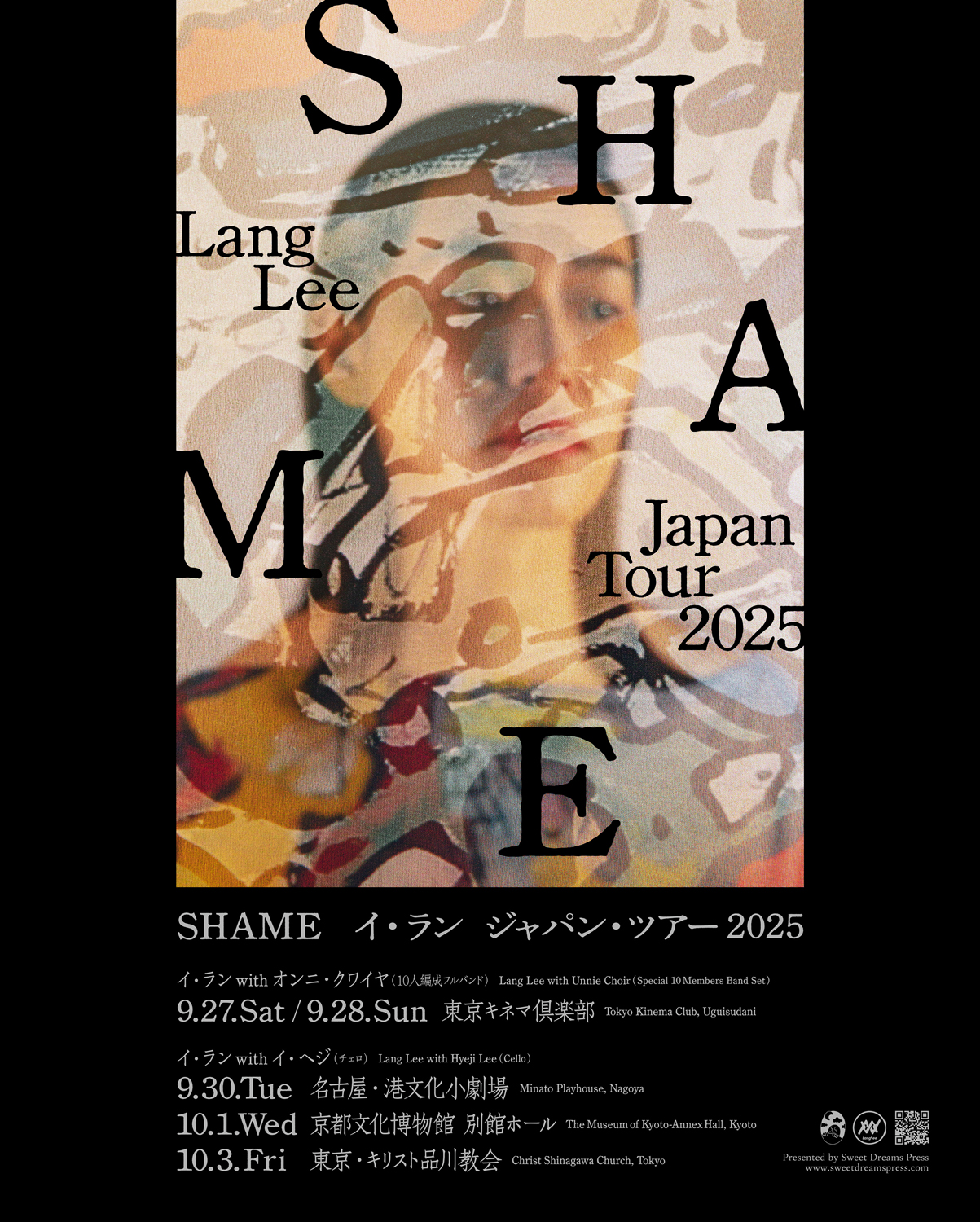 浜辺ふう作詞の日本語ヴァージョンを含むニュー・シングル『SHAME』や、9月23日発売の最新エッセイ集『声を出して、呼びかけて、話せばいいの』(河出書房新社 | 斎藤真理子・浜辺ふう 訳)が話題作となっているイ・ラン(이랑 Lang Lee)が、9月27日(土)よりジャパン・ツアー「SHAME」を開催。