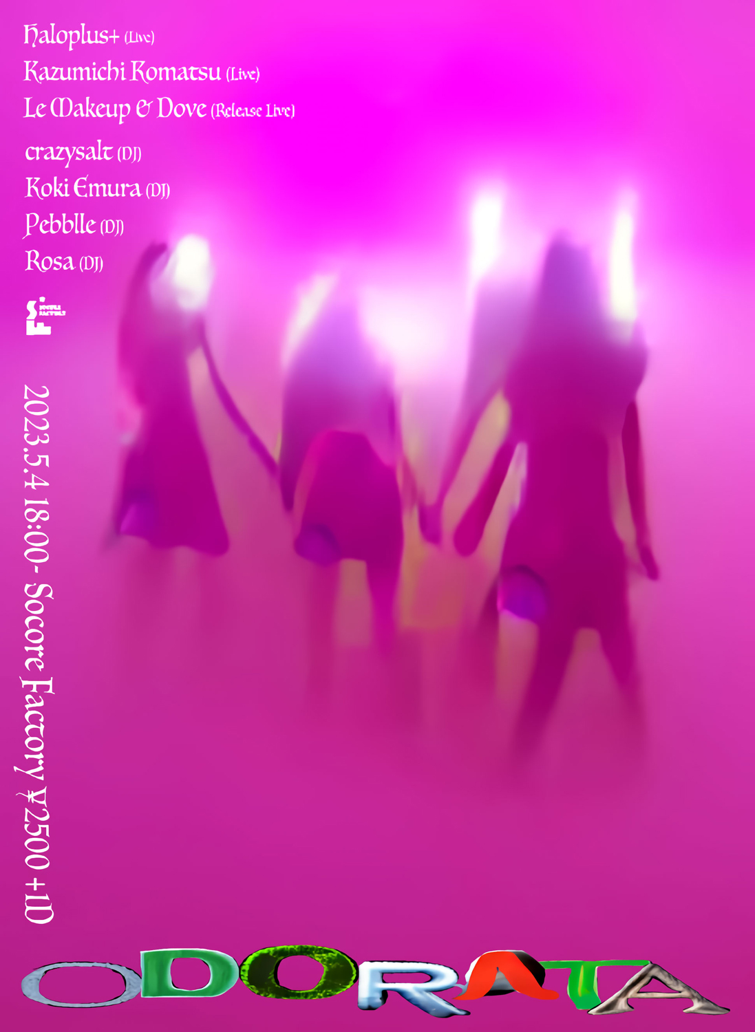 2月発表の2ndフル・アルバム『Odorata』が話題となっている井入啓介 aka Le Makeupが、同作のリリース・ライヴ「Odorata」を5月4日(木)に大阪・南堀江 SOCORE FACTORYにて開催。当日に先駆け、Kazumichi Komatsu(小松千倫) fka Madeggが手がけたフライヤー・アートが公開されています。