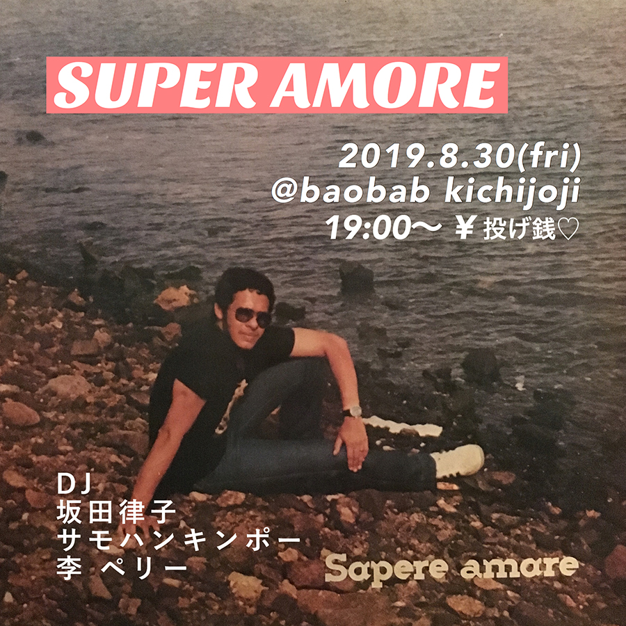 松井一平、沖 真秀と組んだ“シャロン”、BIOMAN(neco眠る, 千紗子と純太)との“愛燦々”、whatman(odd eyes)との“下水道”、アルマンド率いる“若い芽っこの会”の一員。6月29日に閉店した東京・下北沢 MOREでのレジデント・パーティ「Day In Day Out」は次なる開催地を探索中。8月30日(金)からはサモハンキンポー、坂田律子との新パーティ「SUPER AMORE」が東京・吉祥寺 BAOBABにてスタート。