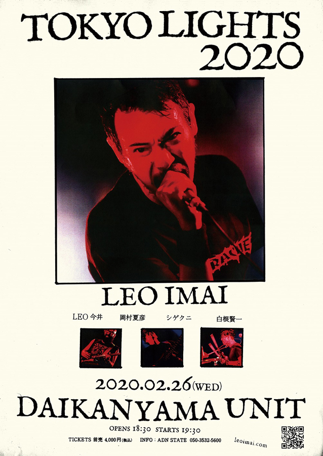 向井秀徳とのデュオ・KIMONOSや、高橋幸宏、小山田圭吾、砂原良徳、TOWA TEI、ゴンドウトモヒコとのMETAFIVEのメンバーとしても活動するLEO今井が、岡村夏彦(g)、シゲクニ(b)、白根賢一(dr)と組んだリーダー・バンド“LEO IMAI”で2月26日(水)に東京・代官山 UNITにて開催するワンマン・ライヴ「TOKYO LIGHTS 2020」を記念して、特設サイトを開設。バンドのギター・ヴォーカルを務める今井のインタビュー動画が公開されています。
