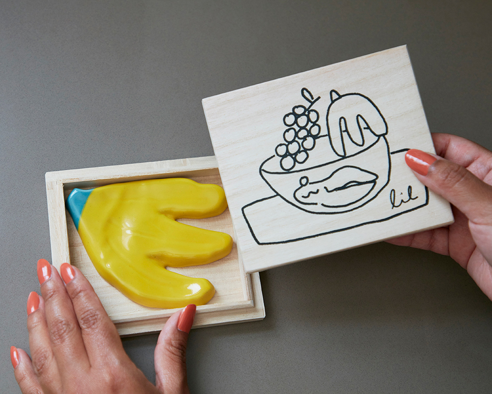 アーティスト / アート・ブランド「bfgf」のファウンダーとしても知られるMartinez。同展では、ドローイング作品8点、シルクスクリーン作品1点、リソプリント作品2点を初出展。波佐見焼の陶磁器メーカー「マルヒロ」とgallery communeのコラボレーションによるセラミック・ミニ・トレイ『Banana』も販売されます。