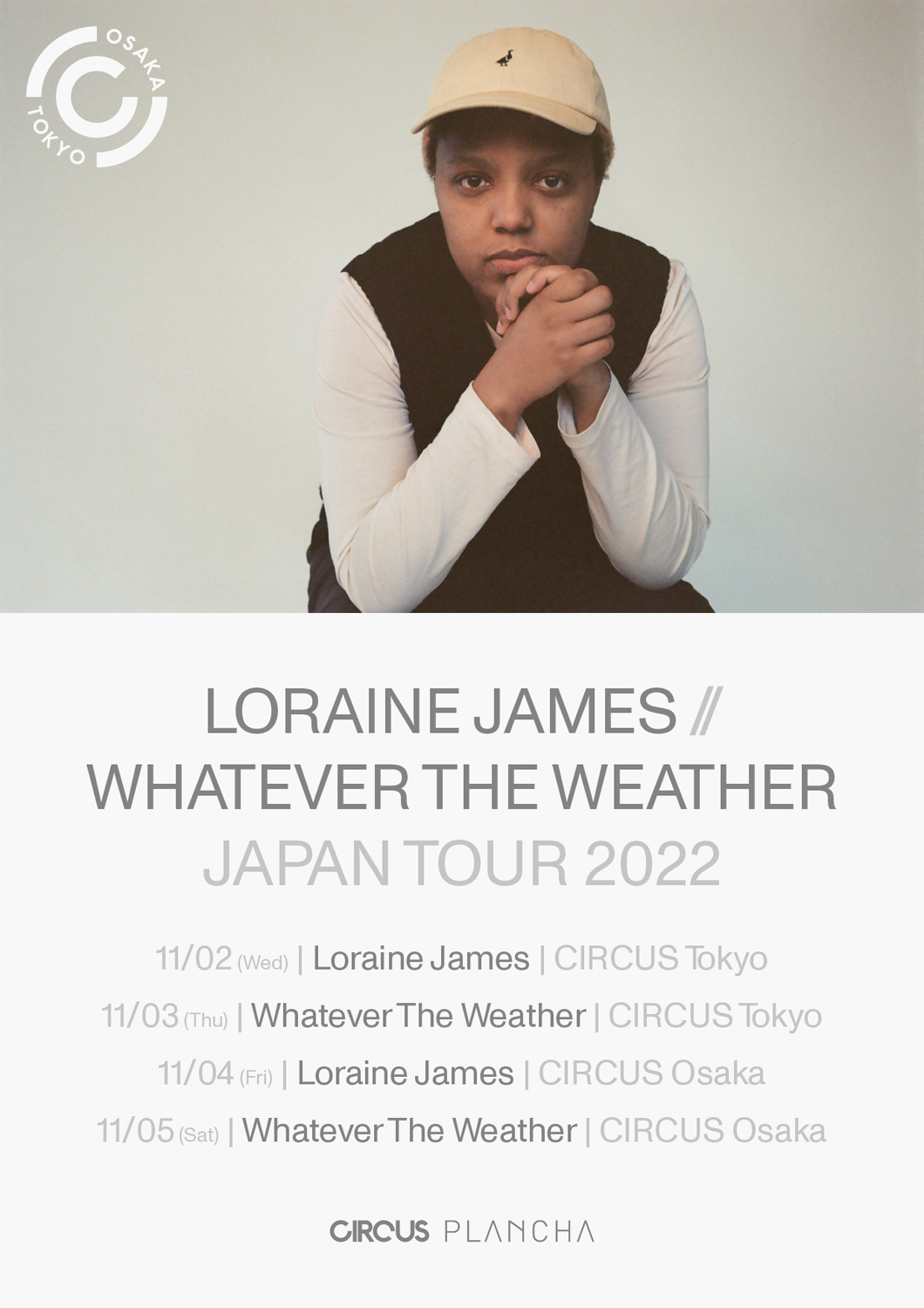 ツアーは11月2日(水・祝前日) / 3日(木・祝)東京・渋谷 CIRCUS Tokyo、4日(金) / 5日(土)大阪・西心斎橋 CIRCUS Osakaの2都市4公演。2日・東京および4日・大阪はLoraine James名義でのナイト・イベント、3日・東京と5日・大阪はWhatever The Weather名義でのデイ・イベントとなっています。前売チケットの一般販売はe+、ZAIKOにて9月12日(月)12:00より開始。