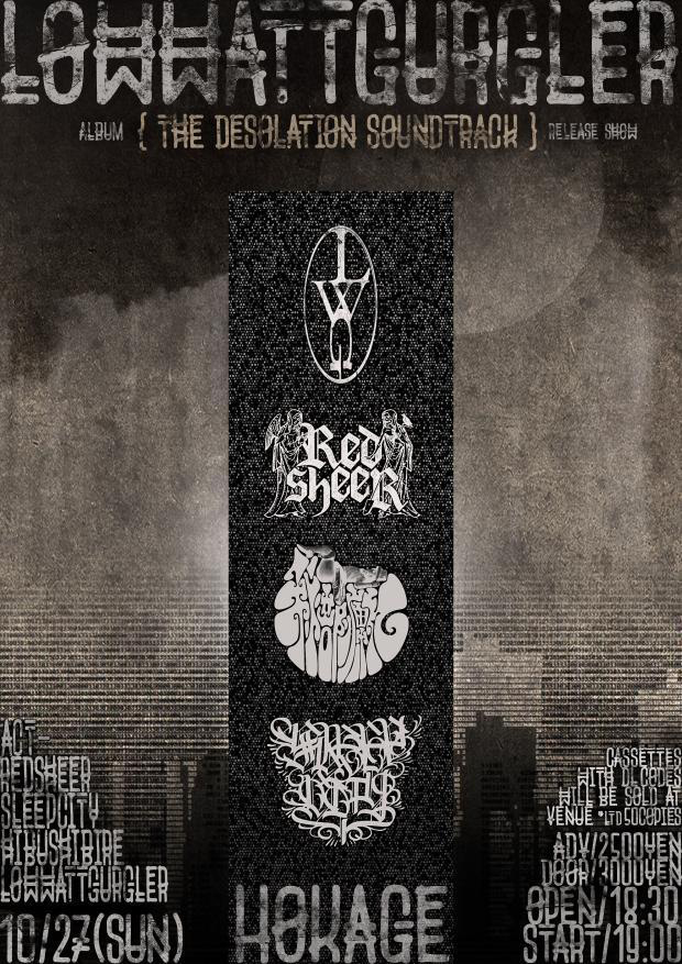 KANCHENJUNGA、KNELLT、NERVELESS、SECOND TO NONE、TERATOVAなどのメンバーが在籍する大阪の新鋭エクスペリメンタル・スラッジ集団・LOW WATT GURGLERが、初音源となる1stアルバム『The Desolation Soundtrack』をカセットテープ・フォーマットでリリース。10月27日(日)に大阪・心斎橋 HOKAGEで開催するリリース・ショウからの販売が決定しています。