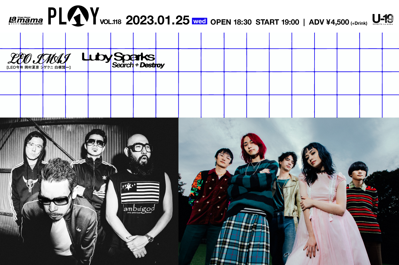 Luby Sparks今後、2023年1月25日(水)に東京・渋谷 La.mama主催の2マン・ライヴ企画「PLAY VOL.118」に出演。LEO IMAI(LEO今井 + 岡村夏彦 + シゲクニ + 白根賢一)との共演が予定されています。前売チケットはe+にて販売中。