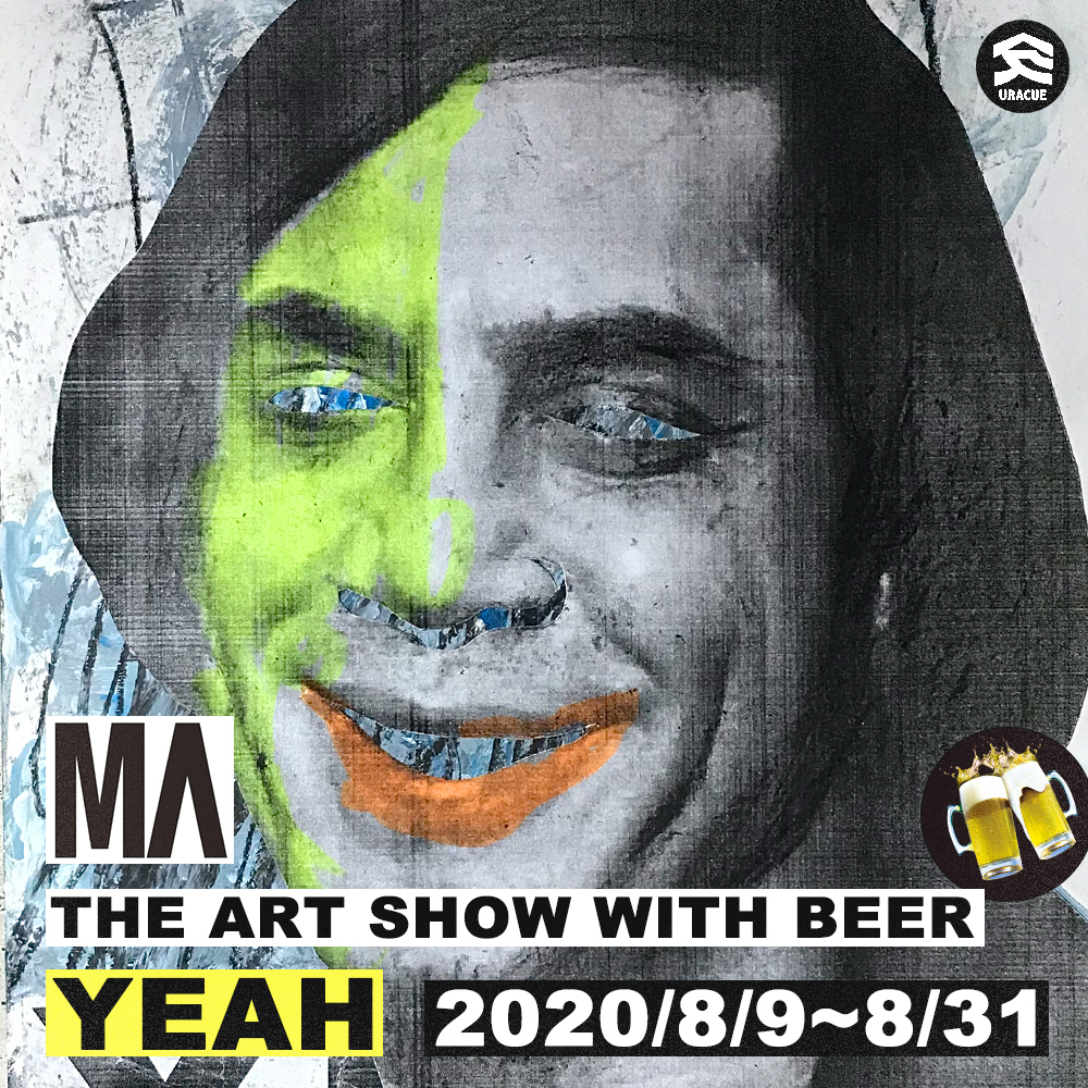 コラージュワークをベースに描く大型のペインティング作品で知られ、道『Lost Identity』(Ill East Record, 2010)、『TOKYODIONYSOS』(G.G.R.R., 2015)Ryo Murakami『Esto』(Bedouin Records, 2016)、ENDON『Through the mirror』(Daymare Recordings | Hydra Head Records, 2017)など音楽作品のヴィジュアルも多く手がけている美術家・MAが、東京・新宿 歌舞伎町のバー「URACUE」にて8月9日(日)から31日(月)にかけてソロ・エキシビション「THE ART SHOW WITH BEER “YEAH”」を開催。