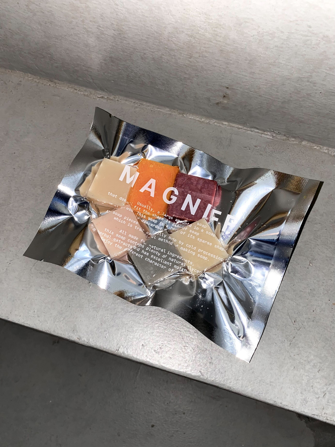 なお、イベント当日の配布がアナウンスされていた「MAGNIFF」限定ノベルティは、ソープとトートバッグ。サステイナブルをテーマに、ソープは不揃いであるために出荷されず工場で廃棄されるものをリユーズ。トートバッグには再生コットンが使用されています。