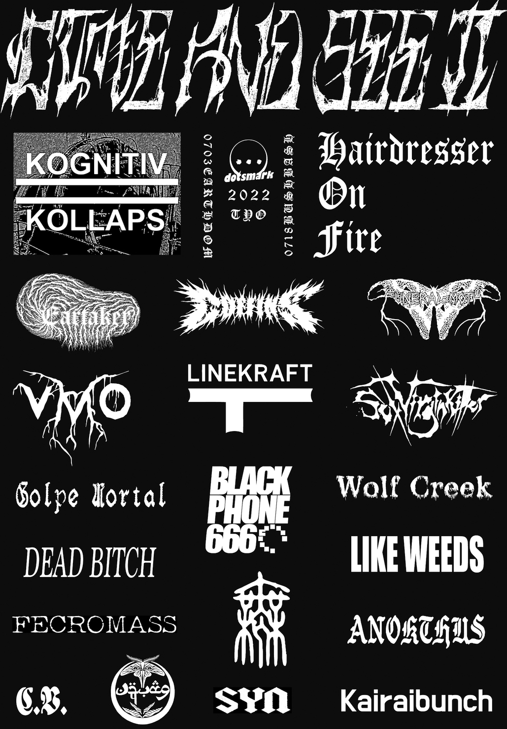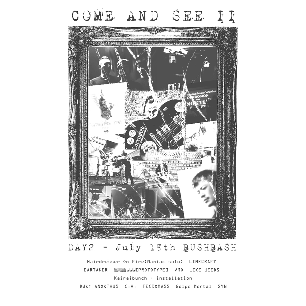 DEAD BITCH / EARTAKER / Hairdresser On Fire (Moduler Synth Solo set of Maniac) / KAIRAI BUNCH (installation) / 黒電話666 (PROTOTYPE) / LIKE WEEDS / LINEKRAFT