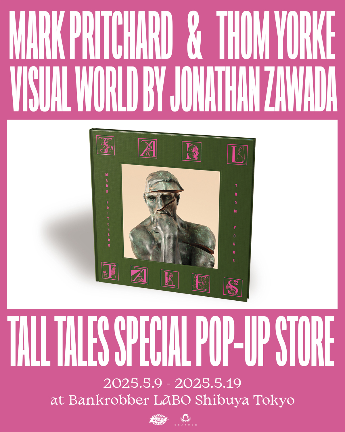 Reload名義やTom MiddletonとのGLOBAL COMMUNICATION / JEDI KNIGHTS、Steve SpacekとのAFRICA HITECHなどでも活動し、近年は本名名義での再ブレイクを果たしているMark Pritchardと、昨年の来日公演が話題となったThom Yorke(RADIOHEAD)が、コラボレート・アルバム『Tall Tales』を5月9日(金)に英「Warp Records」からリリース。これを記念したポップアップ・ショップが5月9日(金)から19日(月)にかけて東京・渋谷 Bankrobber LABO(HMV record shop 渋谷 2F)にて開催されます。