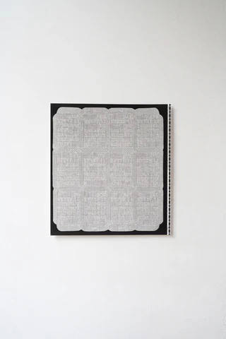 幼い時分から母と祖母の編み物など、手芸が身近にあったというKomoto。同展では、自身が中学生だった2000年から2003年頃の“個人的Y2K”をテーマにした刺繍作品を展示。グラフィックデザイナー・佐藤友莉と共に2021年にスタートしたプロジェクト「Calendar」シリーズの2025年版「Calendar 2025: Pulled Thread」も販売されています。